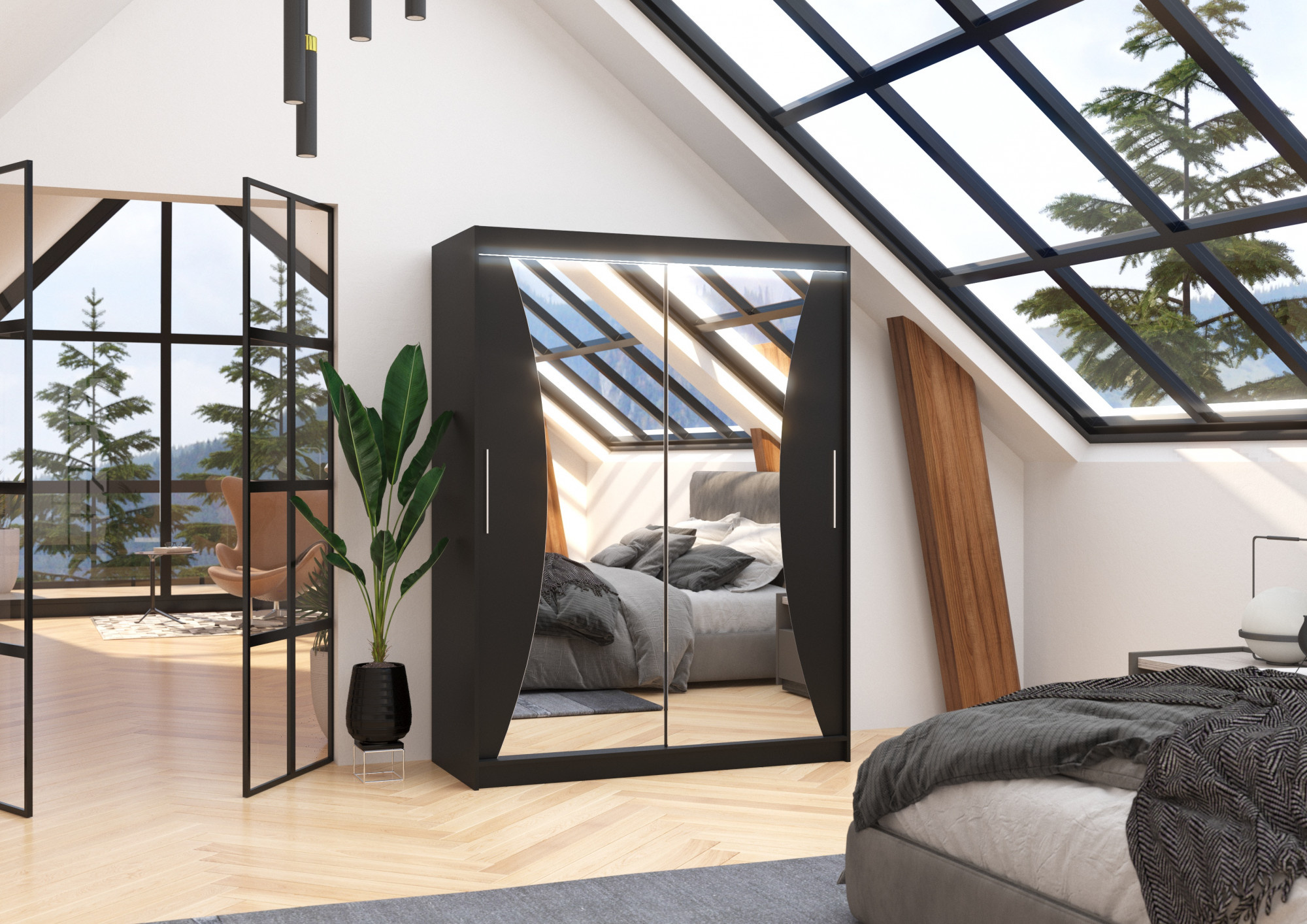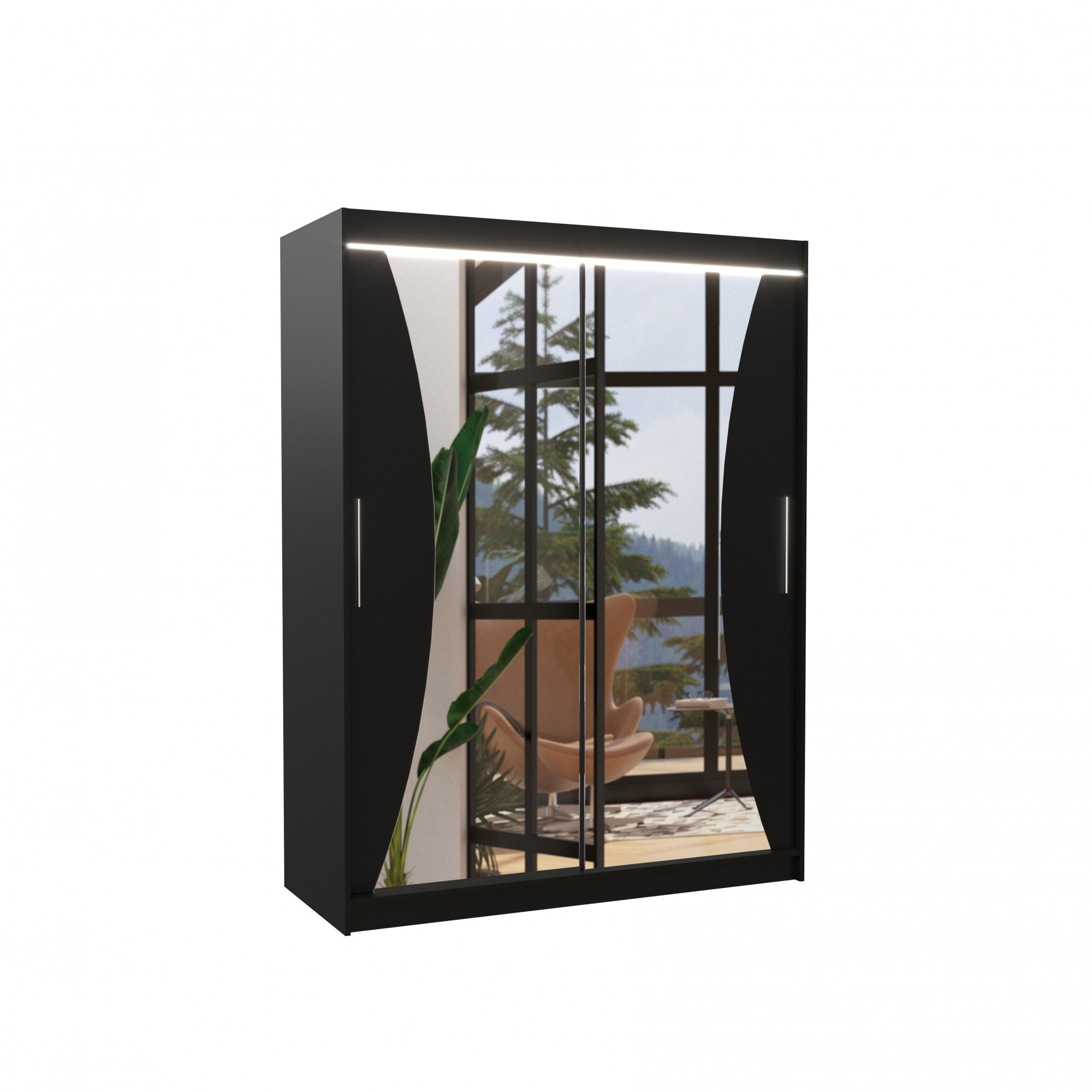 Posuvná skříň se zrcadlem a LED osvětlením MAX 150 Černá+Černá