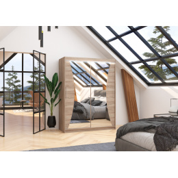 Šatní skříň s posuvnými dveřmi a zrcadlem MAX je ideálním způsobem, jak uspořádat prostor. Nábytek je vybaven prostornými policemi a tyčí, na kterou můžete pověsit šaty, obleky, svrchní oděvy nebo košile. Na čelní straně bylo připevněno zrcadlo, které opticky zvětšuje prostor. Díky tomu, že skříň je posuvná, nemusíte vyčleňovat další místo na otevření dveří, což z ní činí ideální řešení pro malý pokoj nebo úzkou předsíň. Zajímavým prvkem je efektní LED osvětlení, které dodává skříni i místnosti nádherný půvab.