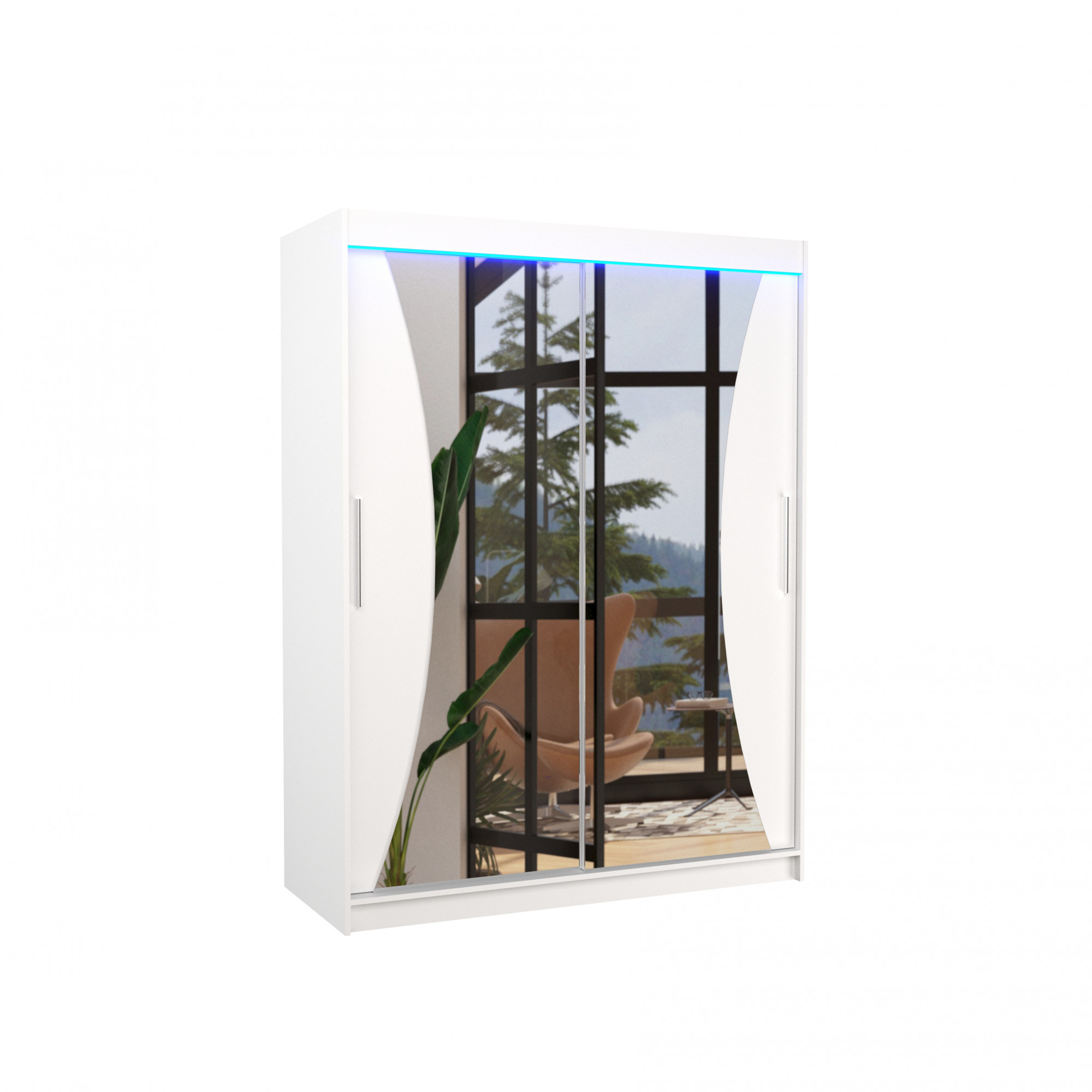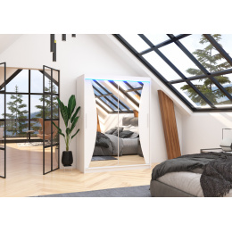 Posuvná skříň se zrcadlem a LED osvětlením MAX 150 Bílá+Bílá