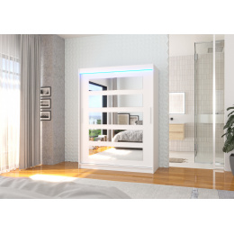 Posuvná skříň se zrcadlem a LED osvětlením MURANI 150 Bílá+Bílá