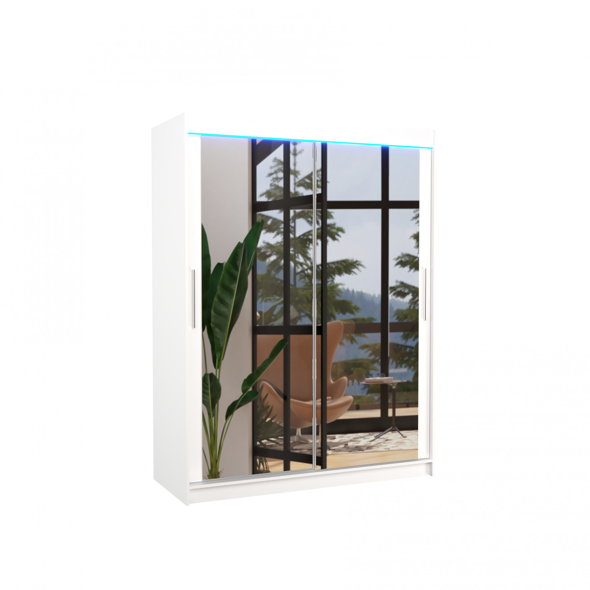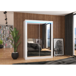 Posuvná skříň se zrcadlem a LED osvětlením PERMO 150 Bílá+Bílá