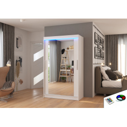 Posuvná skříň se zrcadlem a LED osvětlením TIBAGO 120 Bílá+Bílá