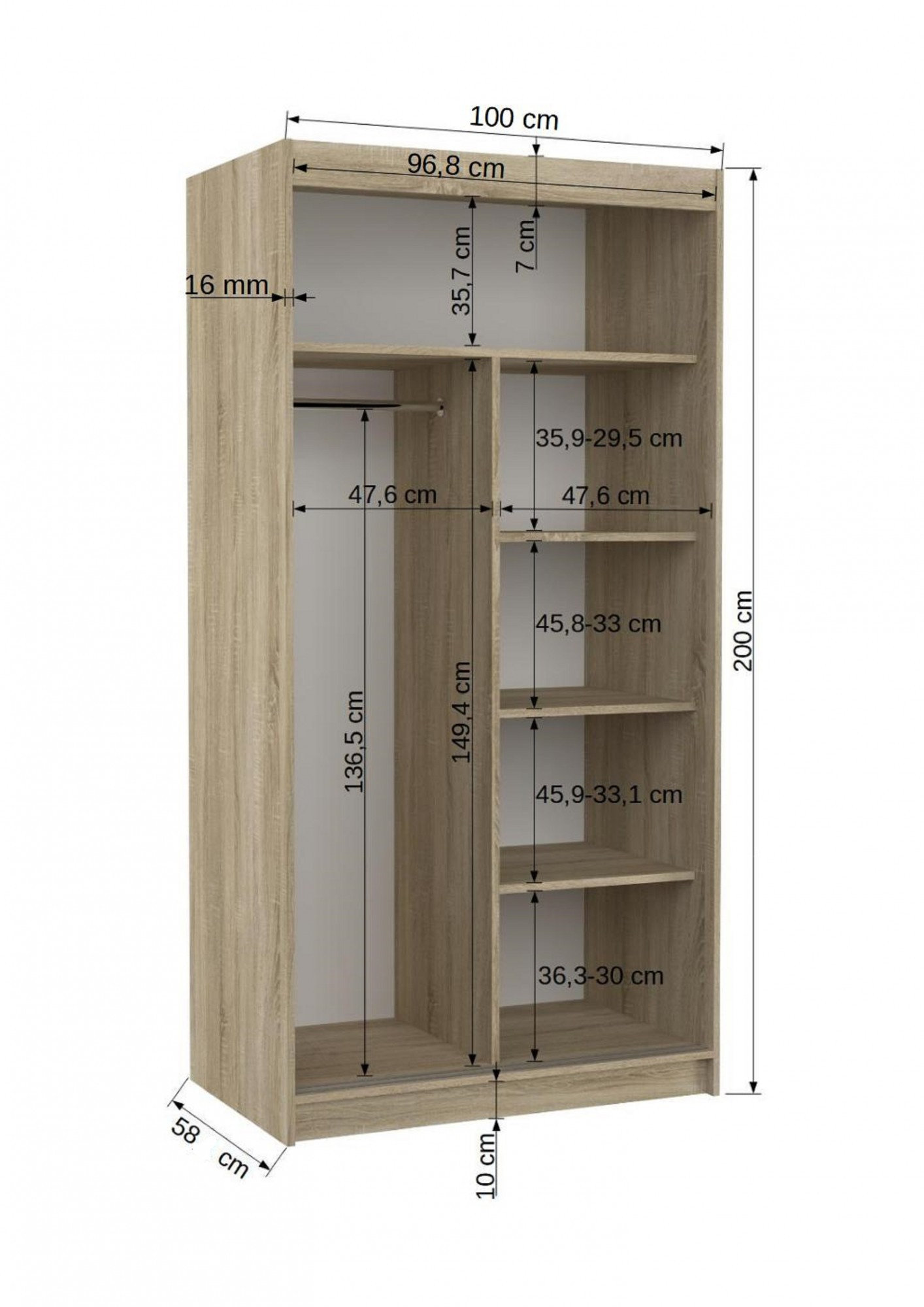 Skříň s posuvnými dveřmi ASTEN 100 Sonoma+White