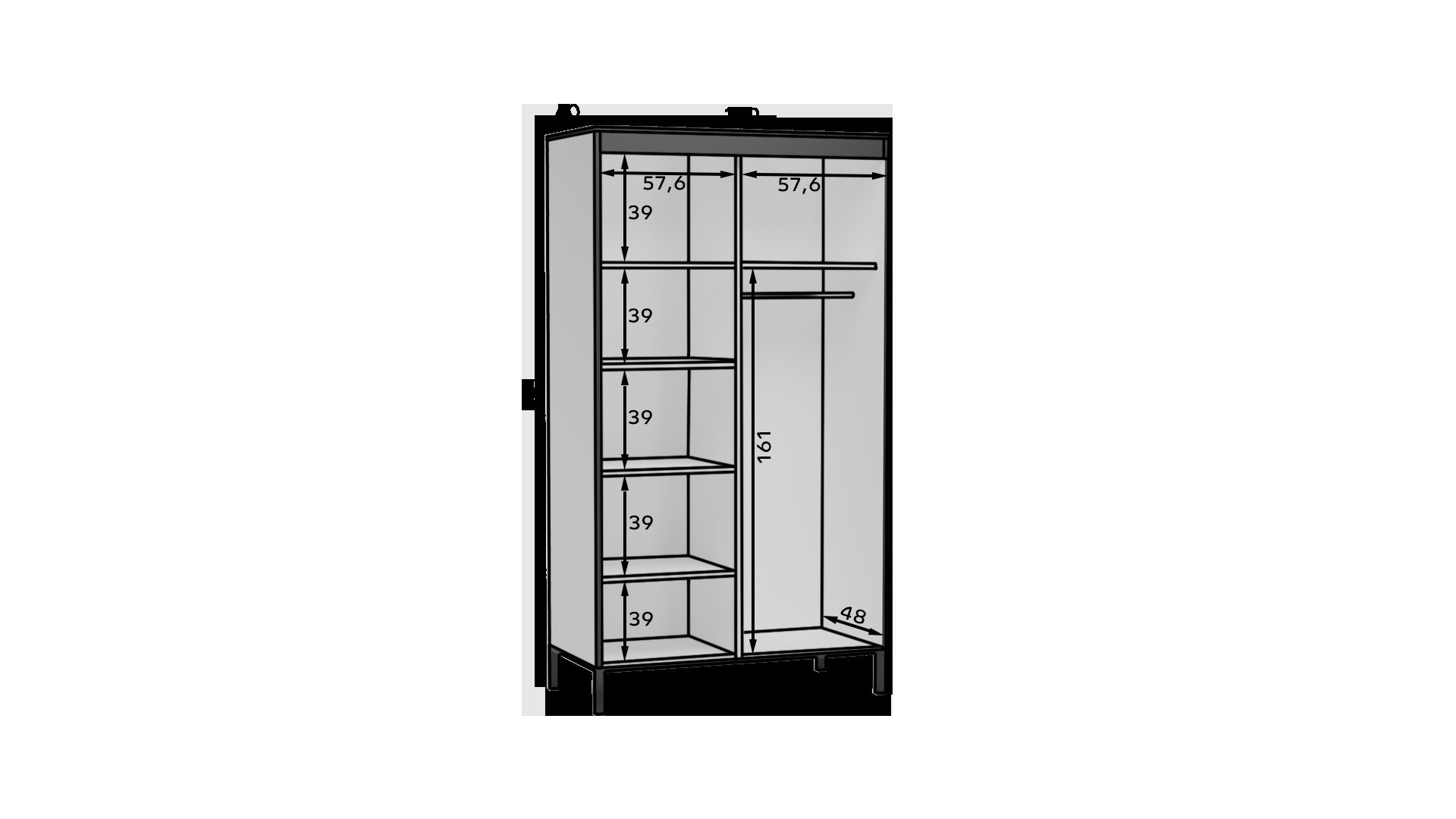 Bell-M je posuvná skříň dostupná ve dvou barevných variantách. Umístěné zrcadlo na přední straně a ozdobné lišty jí dodávají zajímavý a jedinečný design. Skříň se skvěle hodí do mnoha interiérů. Nábytek má systém posuvných dveří, prostorné police a tyč na oblečení. Pro lepší bezpečnost se doporučuje připevnit skříň ke zdi.