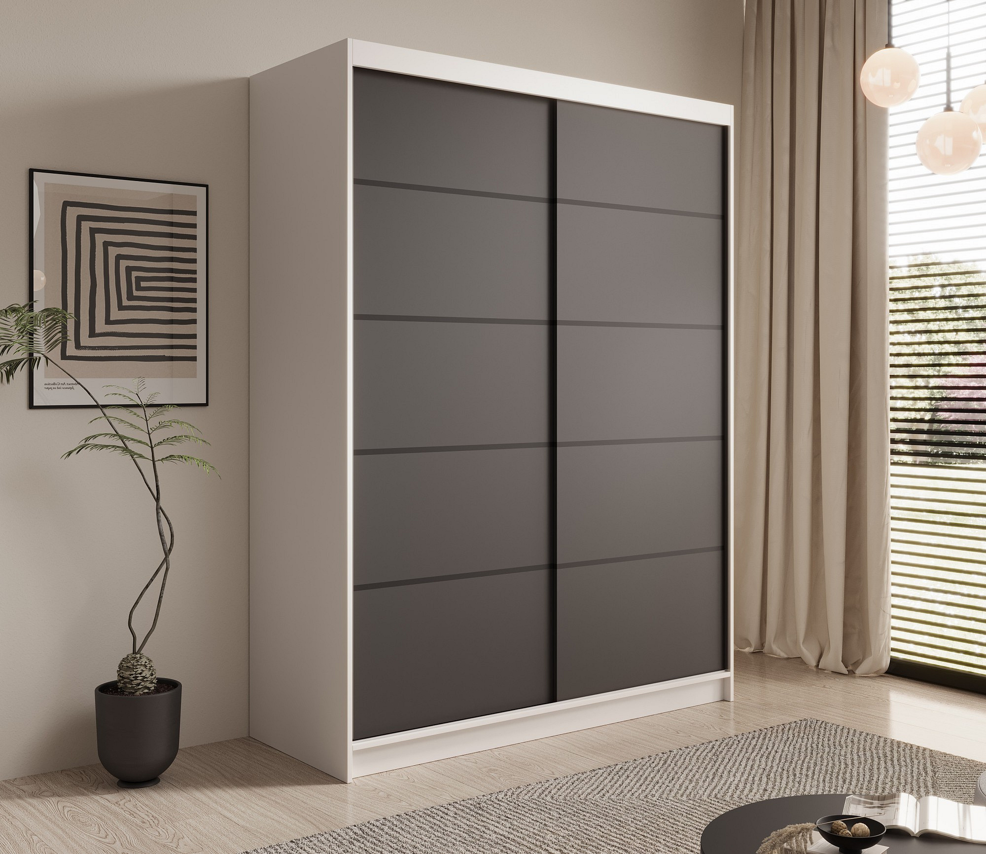 Skříň Calma 150 je ideálním řešením do ložnice, předsíně nebo šatny. Díky posuvným dveřím zajišťuje pohodlné používání i v menších místnostech. Moderní estetika zajišťuje, že se harmonicky hodí jak k minimalistickým, tak k více klasickým aranžmá.