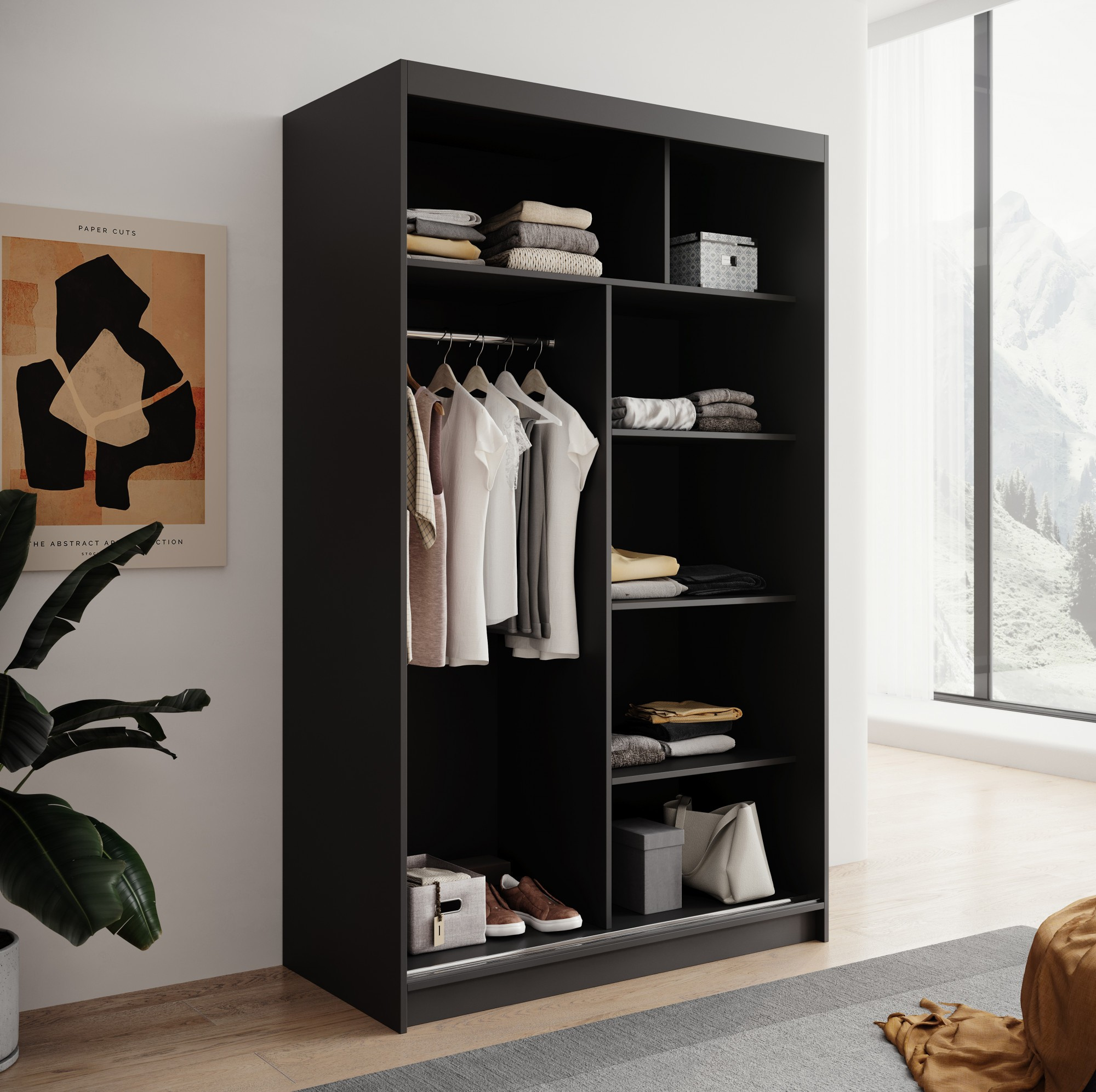Šatní skříň LIZI 120, Černá/Bílá