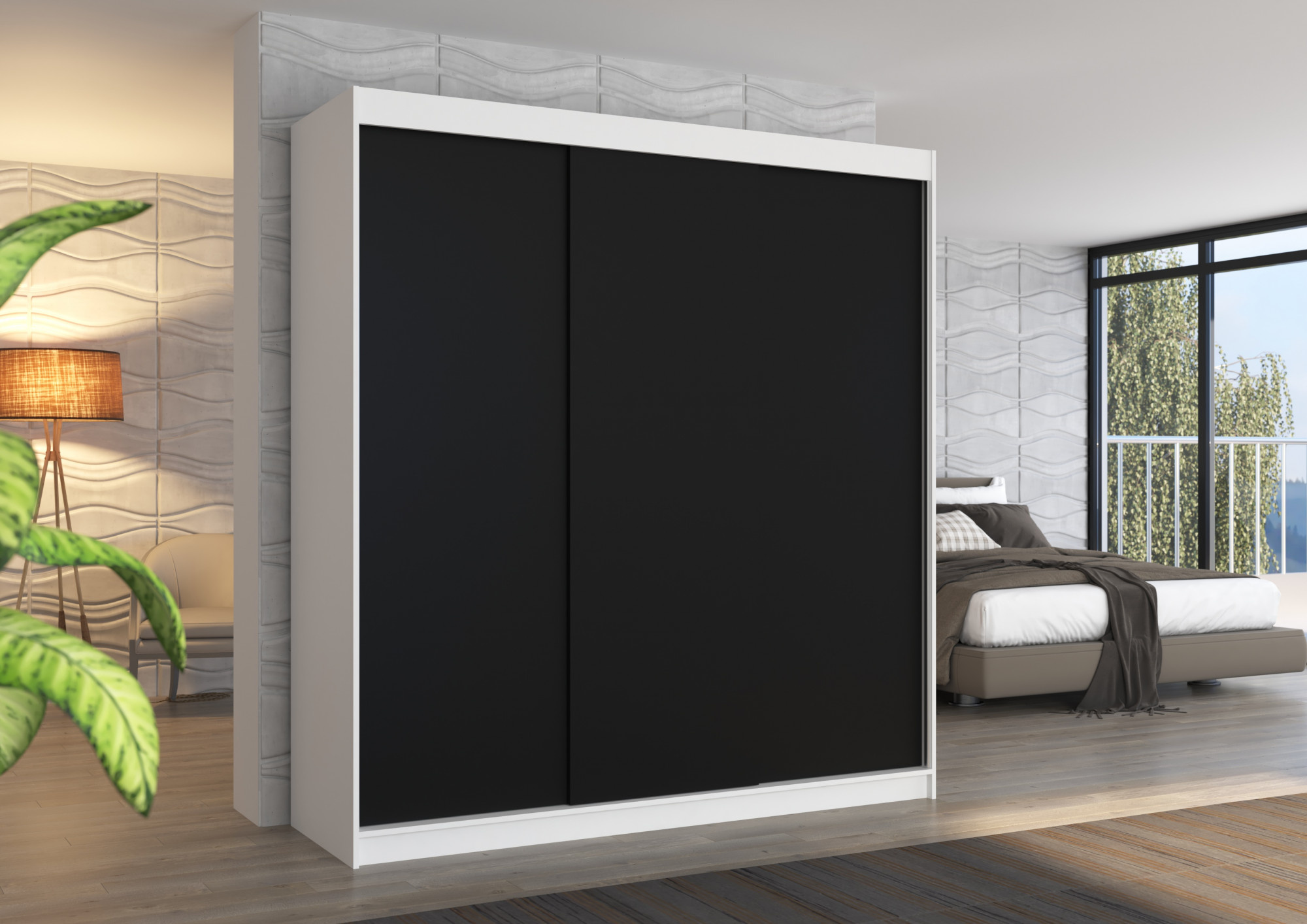 Posuvná skříň MEGAN 200 Bílá+Černá