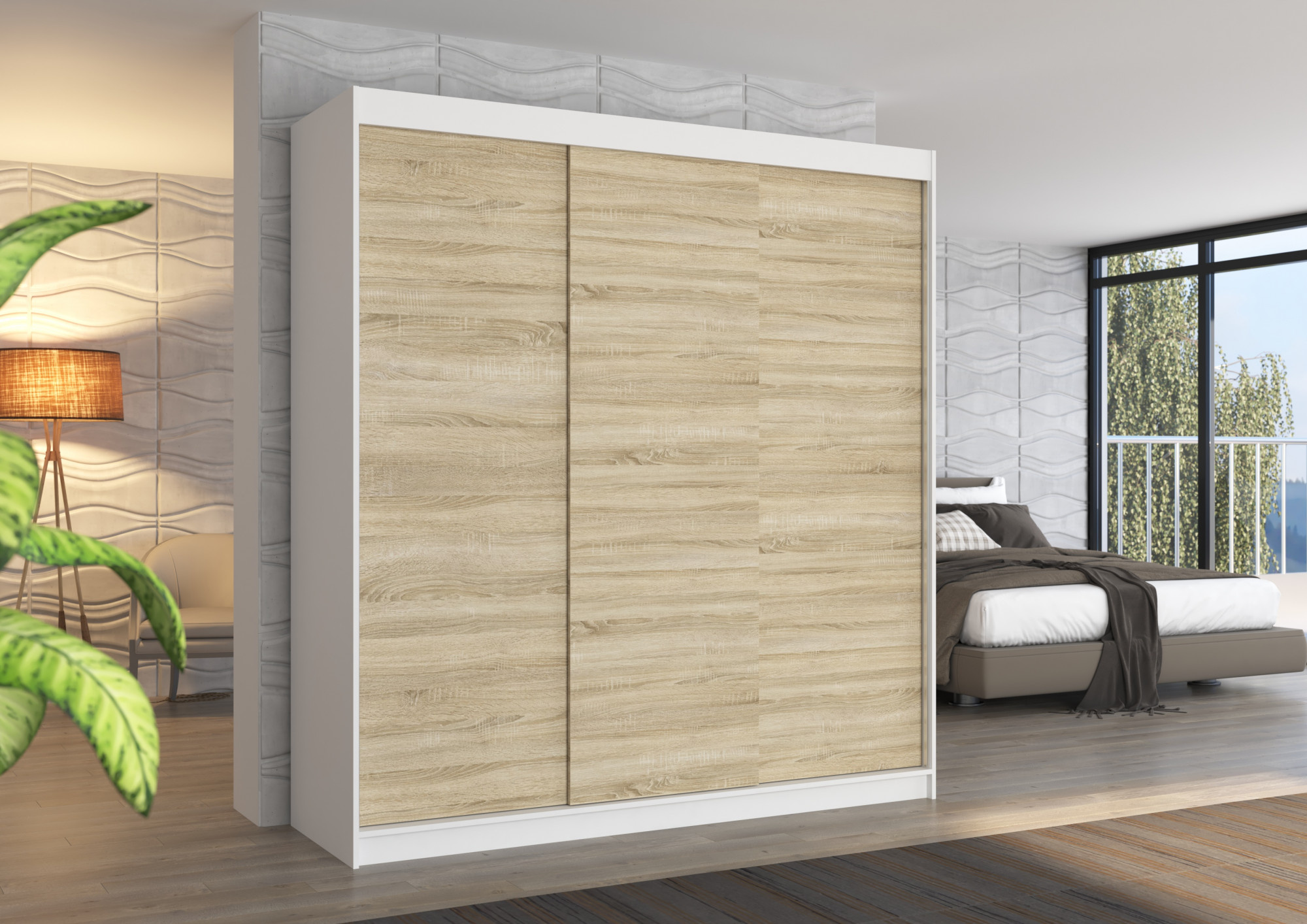 Posuvná skříň MEGAN 200 Bílá+Sonoma