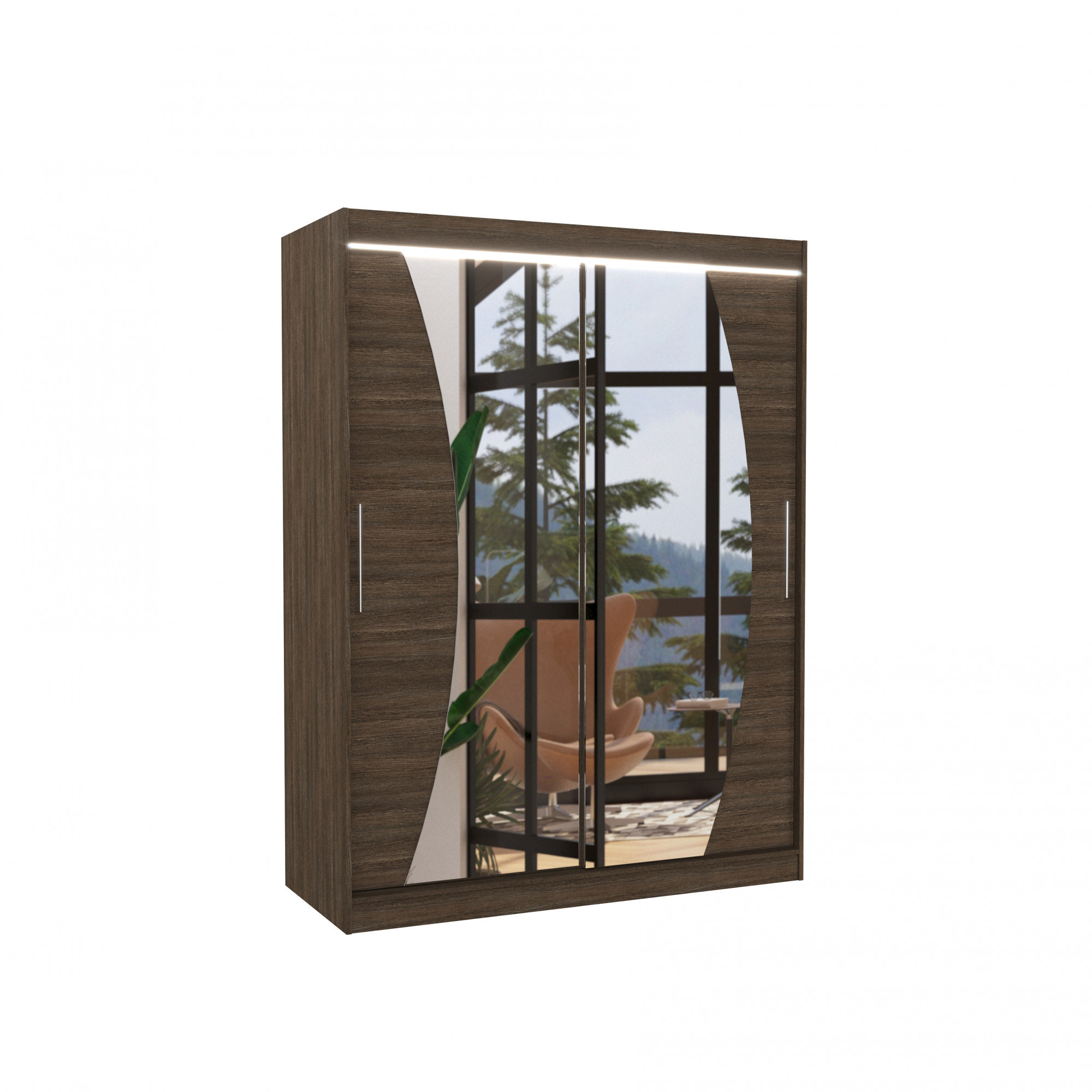 Posuvná skříň se zrcadlem a LED osvětlením MODESTO 150 Choco+Choco