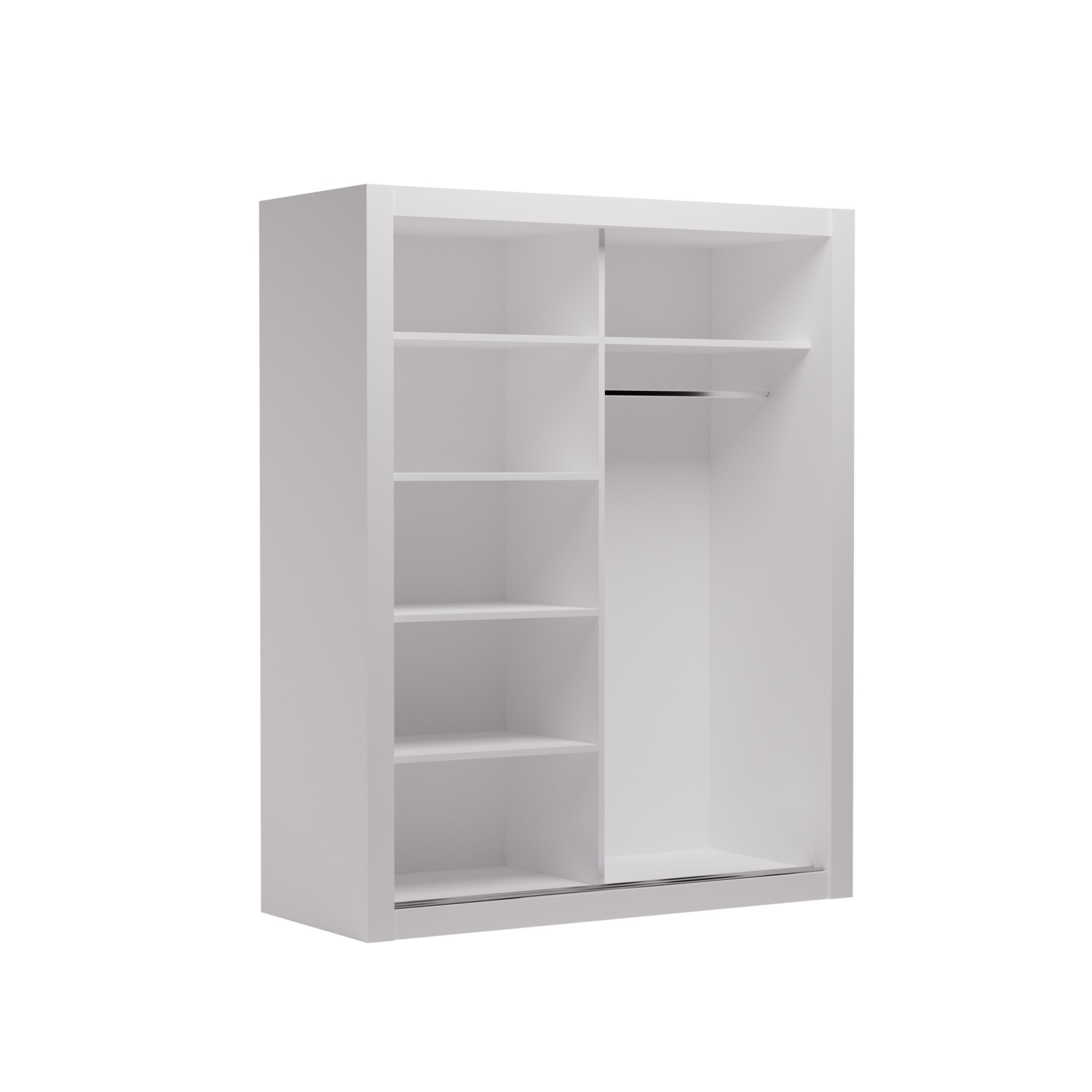 Posuvná skříň MOX je ideálním způsobem, jak uspořádat prostor. Nábytek je vybaven prostornými policemi a tyčí, na kterou můžete pověsit šaty, obleky, svrchní oděvy nebo košile. Díky tomu, že skříň je posuvná, nemusíte vyčleňovat další místo na otevření dveří, což z ní činí ideální řešení pro malý pokoj nebo úzkou předsíň.