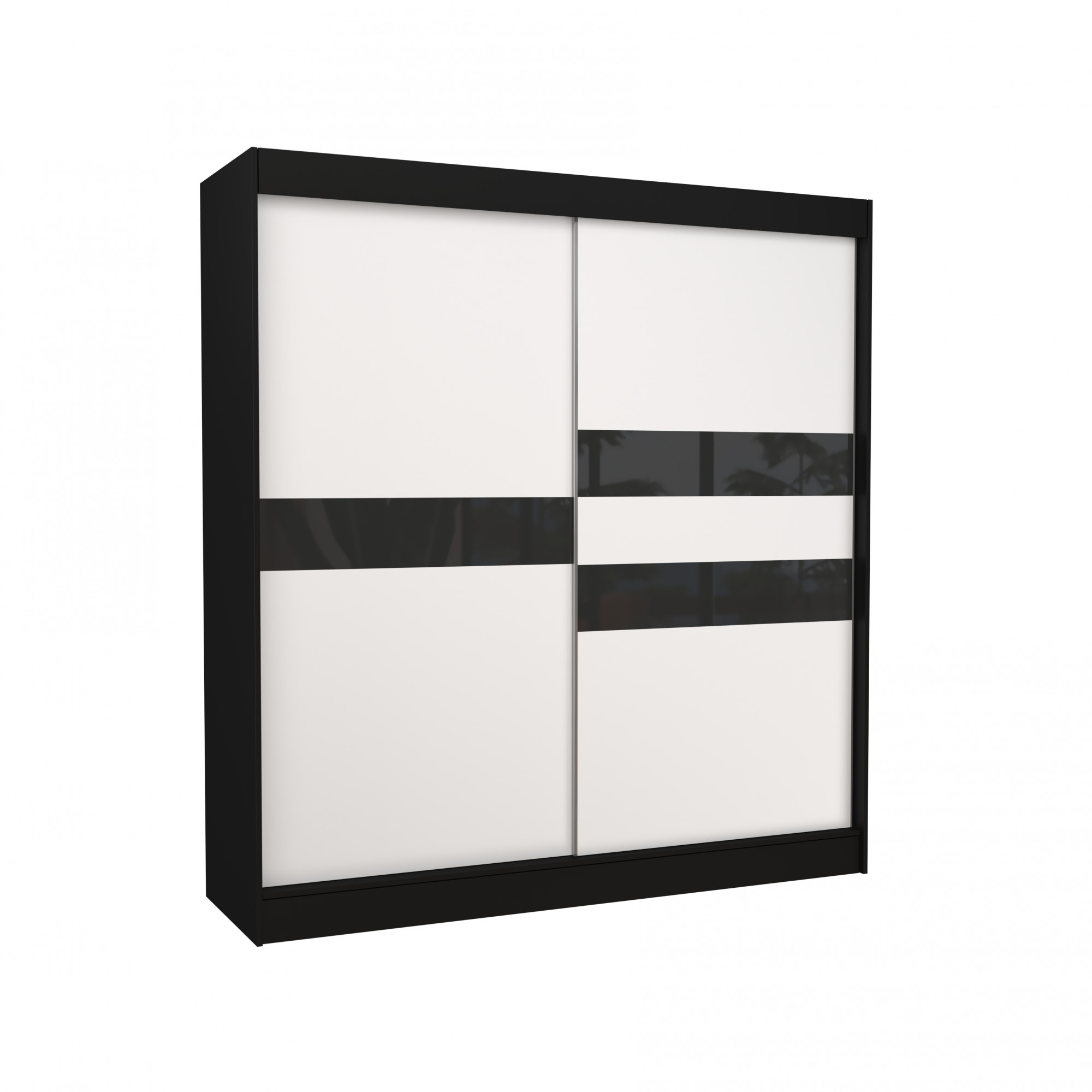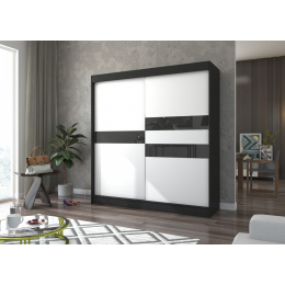 Šatní skříň s posuvnými dveřmi s lacobelem BATIA 200 Černá+Bílá