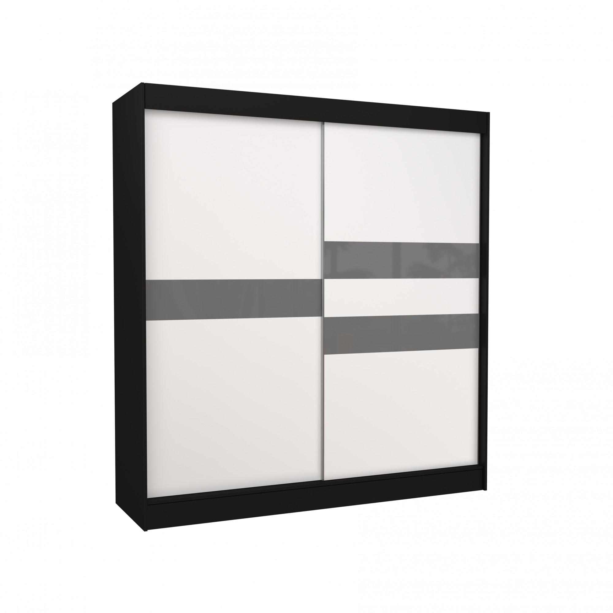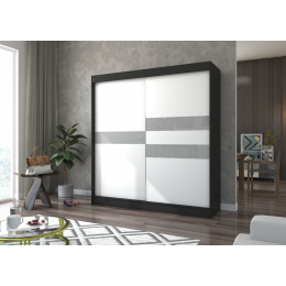 Šatní skříň s posuvnými dveřmi s lacobelem BATIA 200 Černá+Bílá