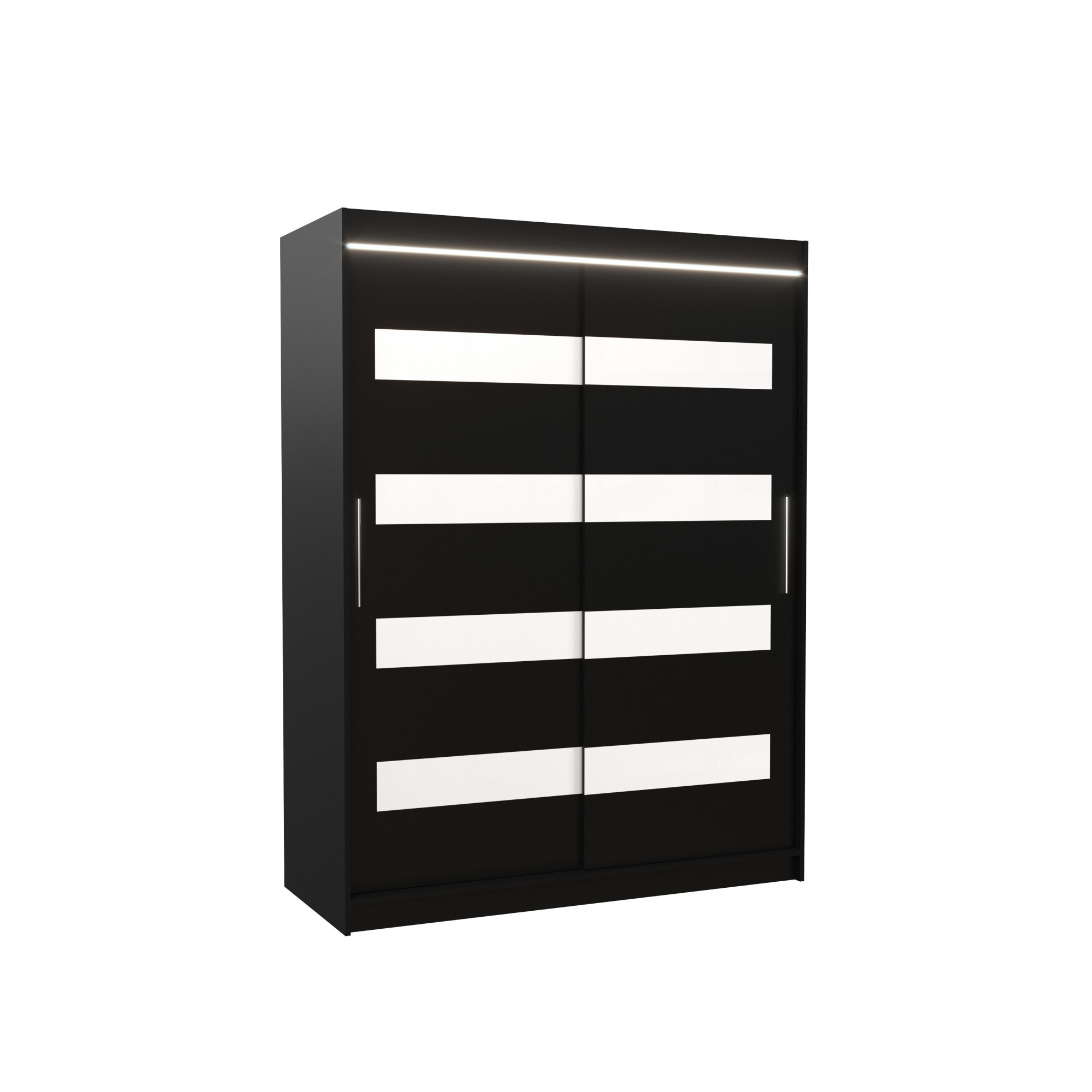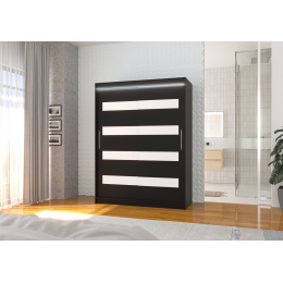 Posuvná skříň s lacobelem a LED osvětlením MARTINEZ 150 Černá+Bílý Lacobel