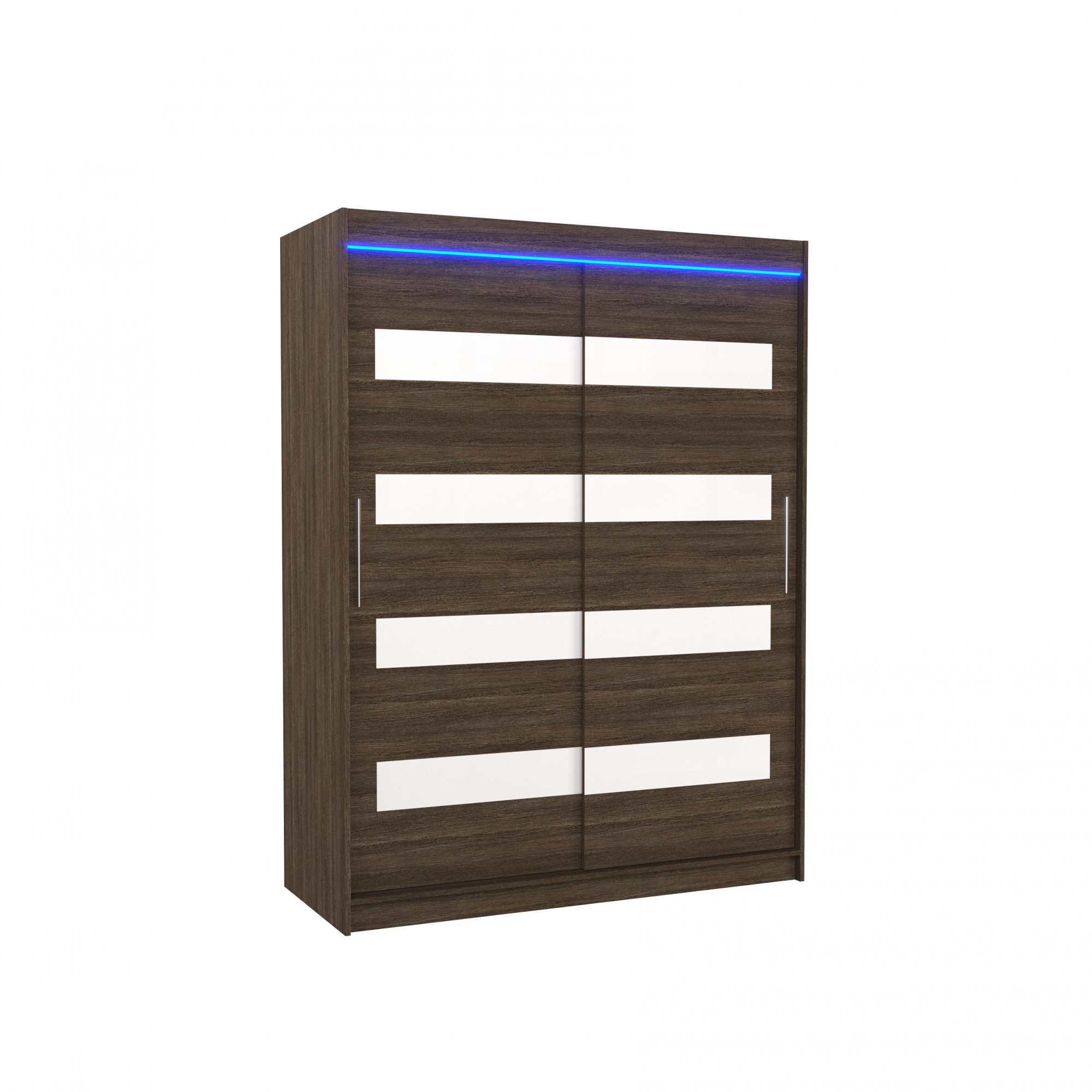 Posuvná skříň s lacobelem a LED osvětlením MARTINEZ 150 Choco+White Lacobel