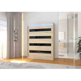 Posuvná skříň s lacobelem a LED osvětlením MARTINEZ 150 Sonoma+Černý Lacobel