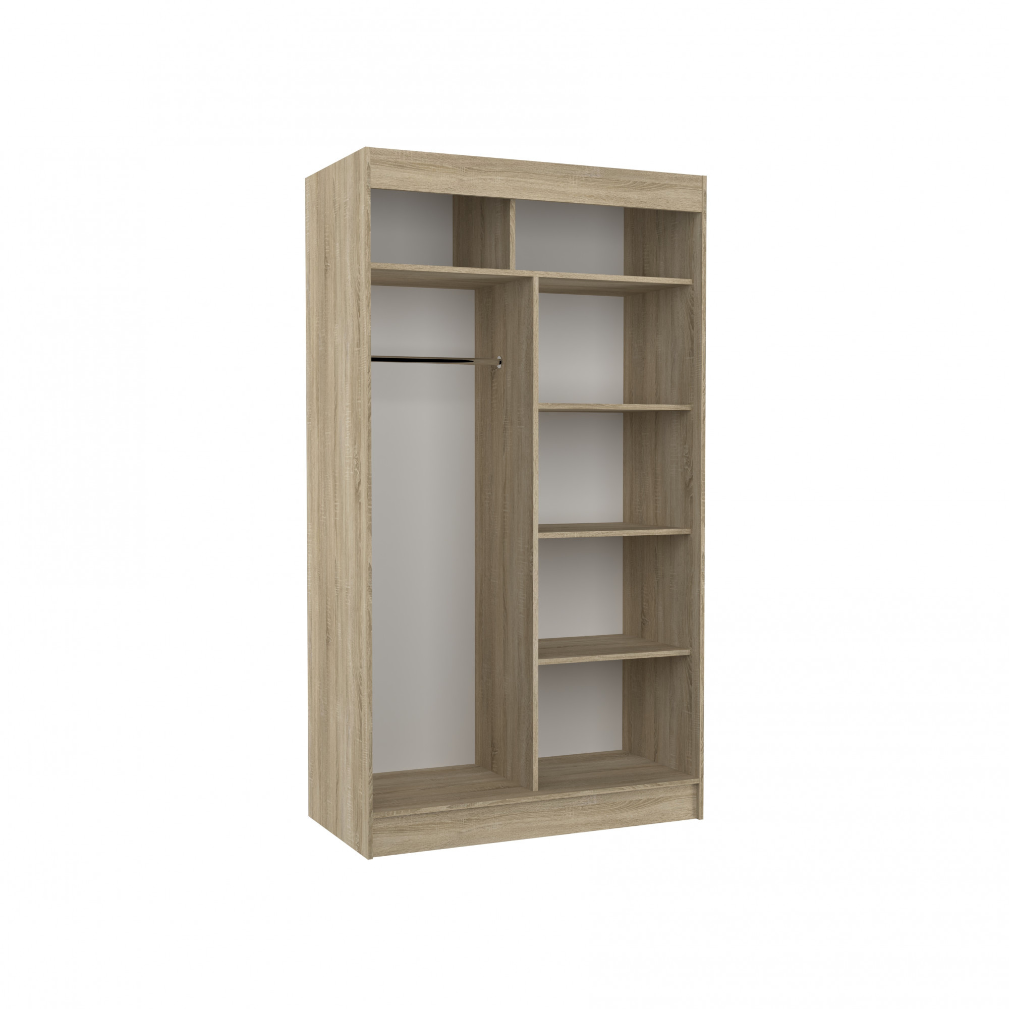 Posuvná skříň BATIA je ideálním způsobem, jak uspořádat prostor. Nábytek je vybaven prostornými policemi a tyčí, na kterou můžete pověsit šaty, obleky, svrchní oděvy nebo košile. Na čelní straně se nacházejí ozdobné lacobely, které dodávají nábytku výjimečný styl. Díky tomu, že skříň je posuvná, nemusíte vyčleňovat další místo na otevření dveří, což z ní činí ideální řešení pro malý pokoj nebo úzkou předsíň.