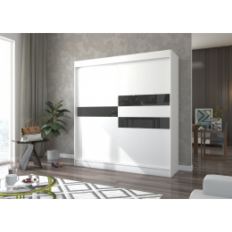 Posuvná skříň s lacobelem BATIA 200 Bílá+Černý Lacobel