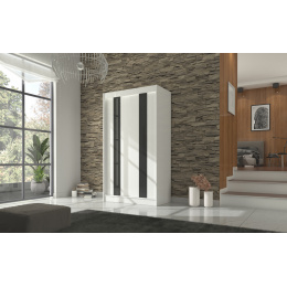 Šatní skříň KAREN 120, Bílá/Černý Lacobel