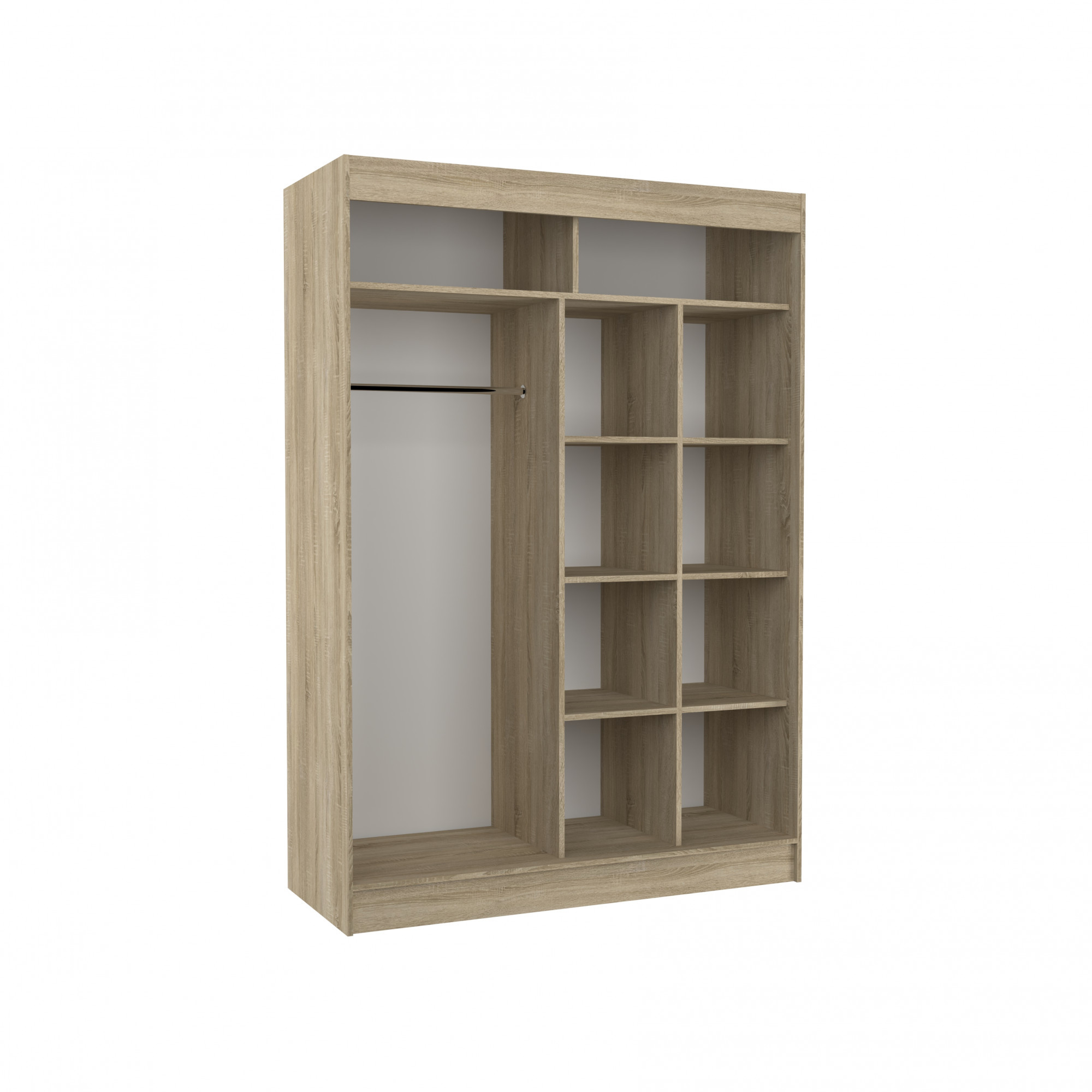 Posuvná skříň KAREN je ideálním způsobem, jak uspořádat prostor. Nábytek je vybaven prostornými policemi a tyčí, na kterou můžete pověsit šaty, obleky, svrchní oděvy nebo košile. Na čelní straně se nacházejí ozdobné lacobely, které dodávají nábytku výjimečný styl. Díky tomu, že skříň je posuvná, nemusíte vyčleňovat další místo na otevření dveří, což z ní činí ideální řešení pro malý pokoj nebo úzkou předsíň.