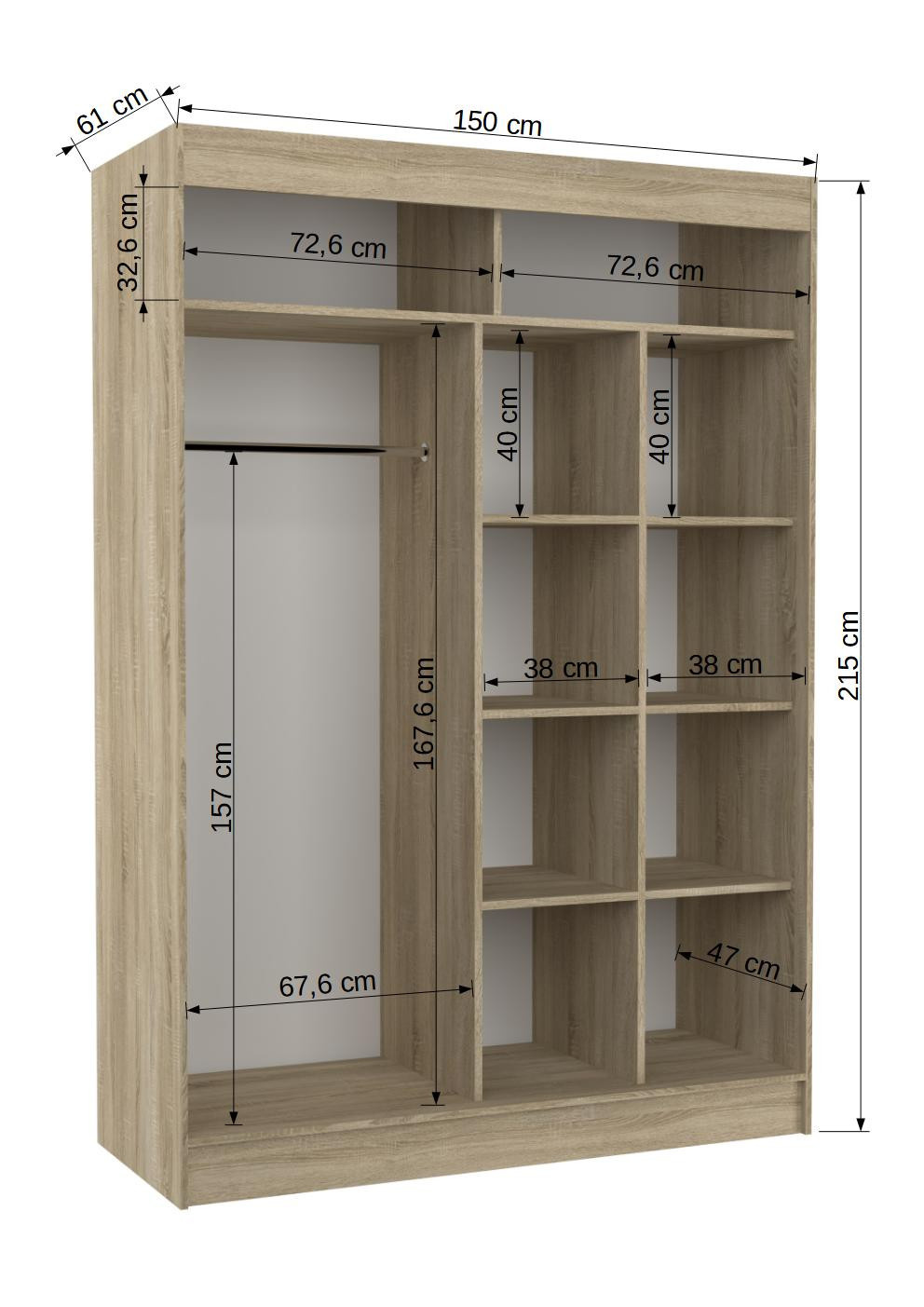 Posuvná skříň s lacobelem KAREN 150 Sonoma+Černý Lacobel