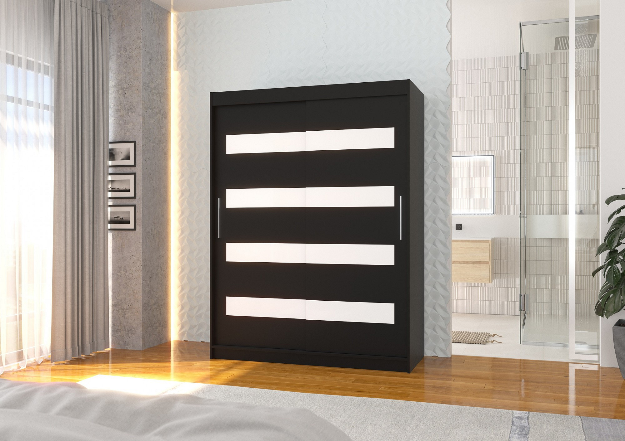 Posuvná skříň s lacobelem MARTINEZ 150 Černá+Bílý Lacobel