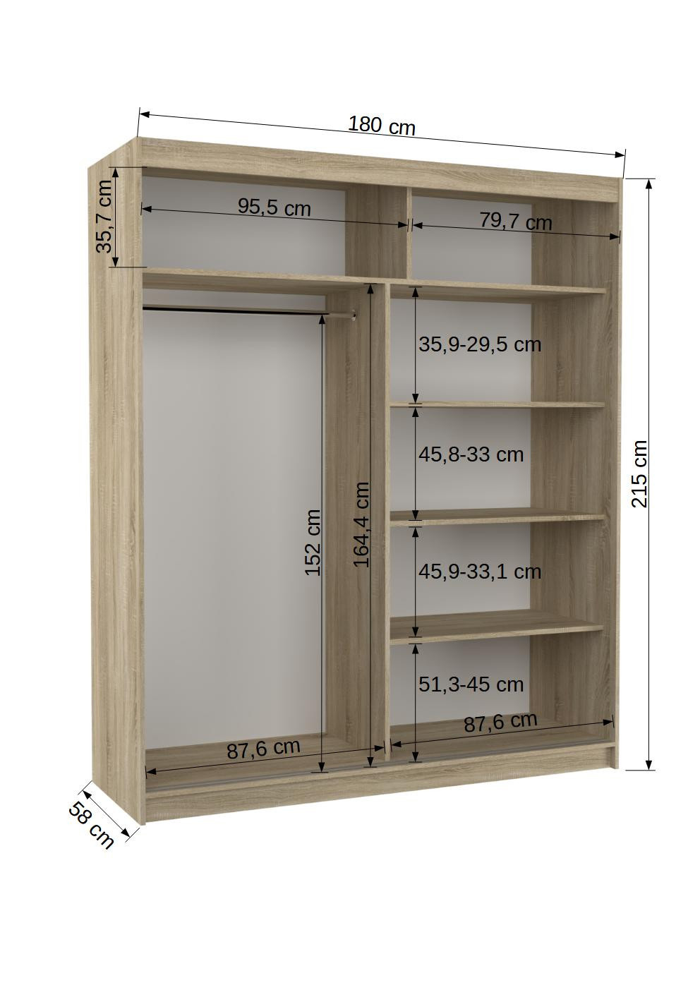 Šatní skříň s posuvnými dveřmi a LED osvětlením SPECTRA 180 Sonoma+Sonoma