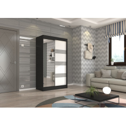 Posuvná skříň se zrcadlem a lacobelem TOURA 120 Černá+Bílá