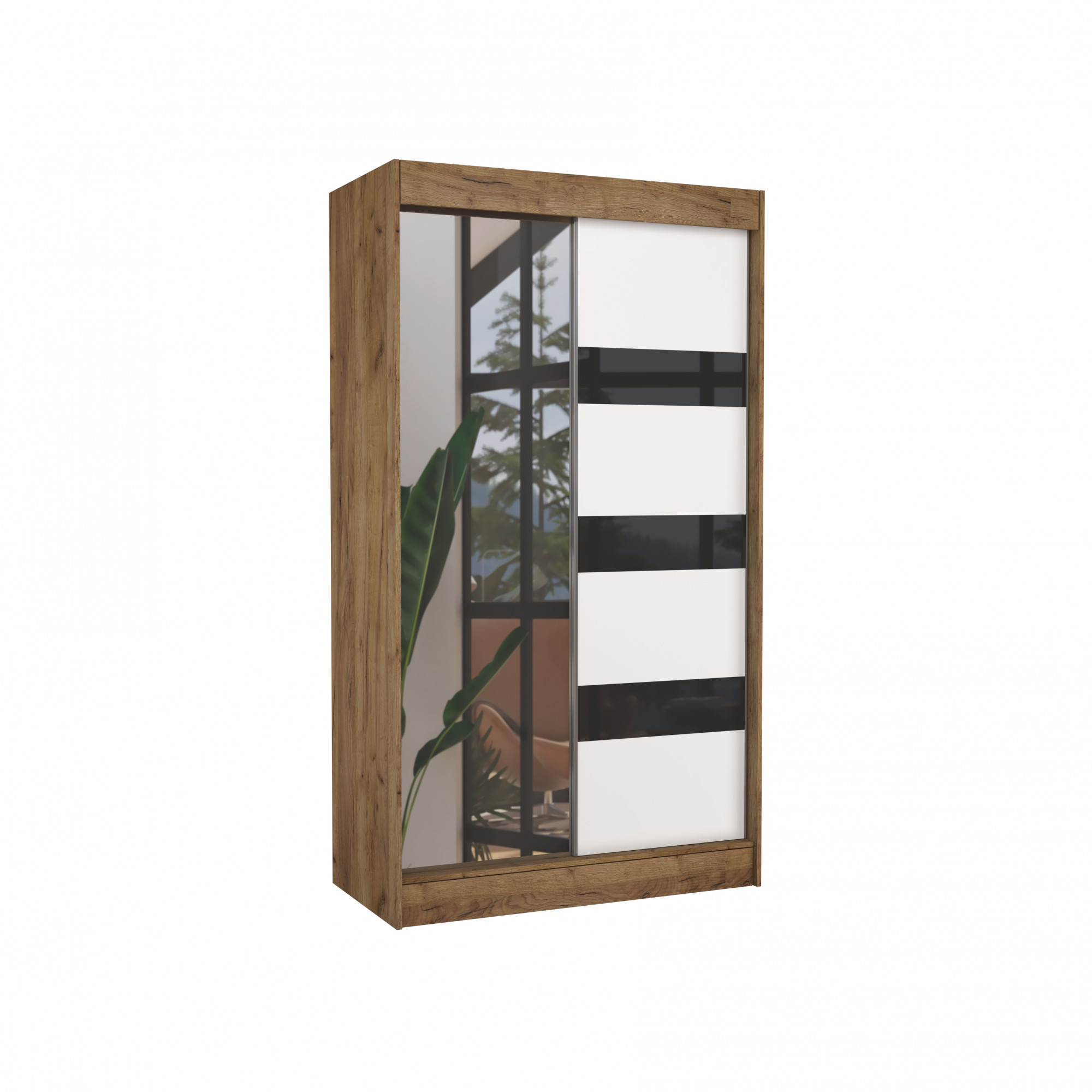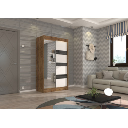 Šatní skříň s posuvnými dveřmi, zrcadlem a lacobelem TOURA 120 Craft+White