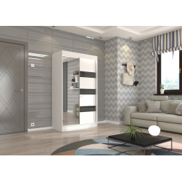 Posuvná skříň se zrcadlem a lacobelem TOURA 120 Bílá+Černý Lacobel