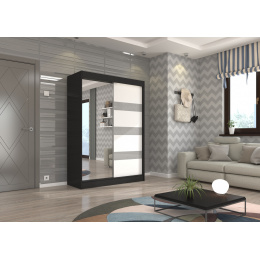 Posuvná skříň se zrcadlem a lacobelem TOURA 150 Černá+Bílá
