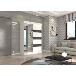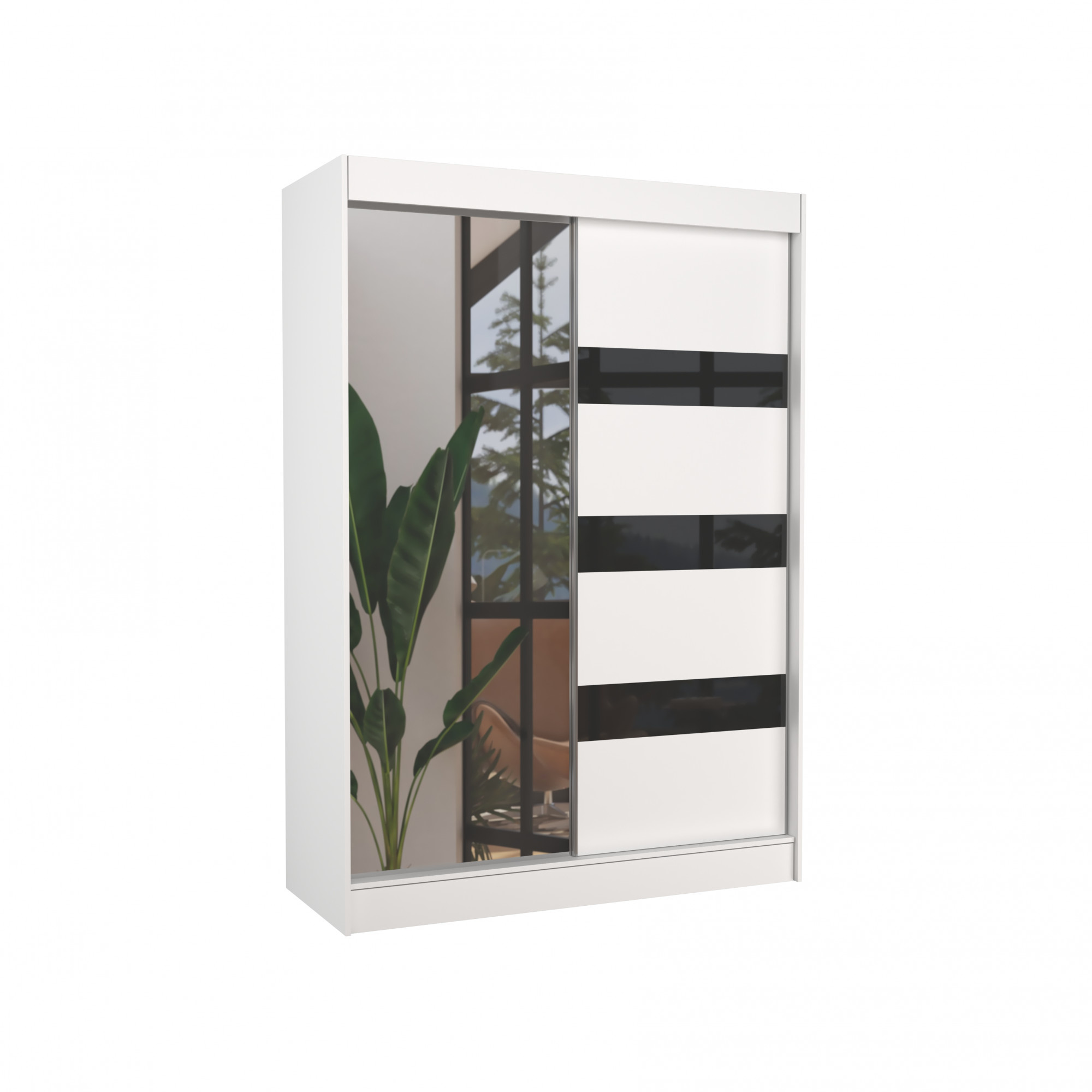 Posuvná skříň se zrcadlem a lacobelem TOURA 150 Bílá+Černý Lacobel