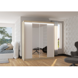 Posuvná skříň se zrcadlem a LED osvětlením BALANCE 180 Sonoma+Bílá