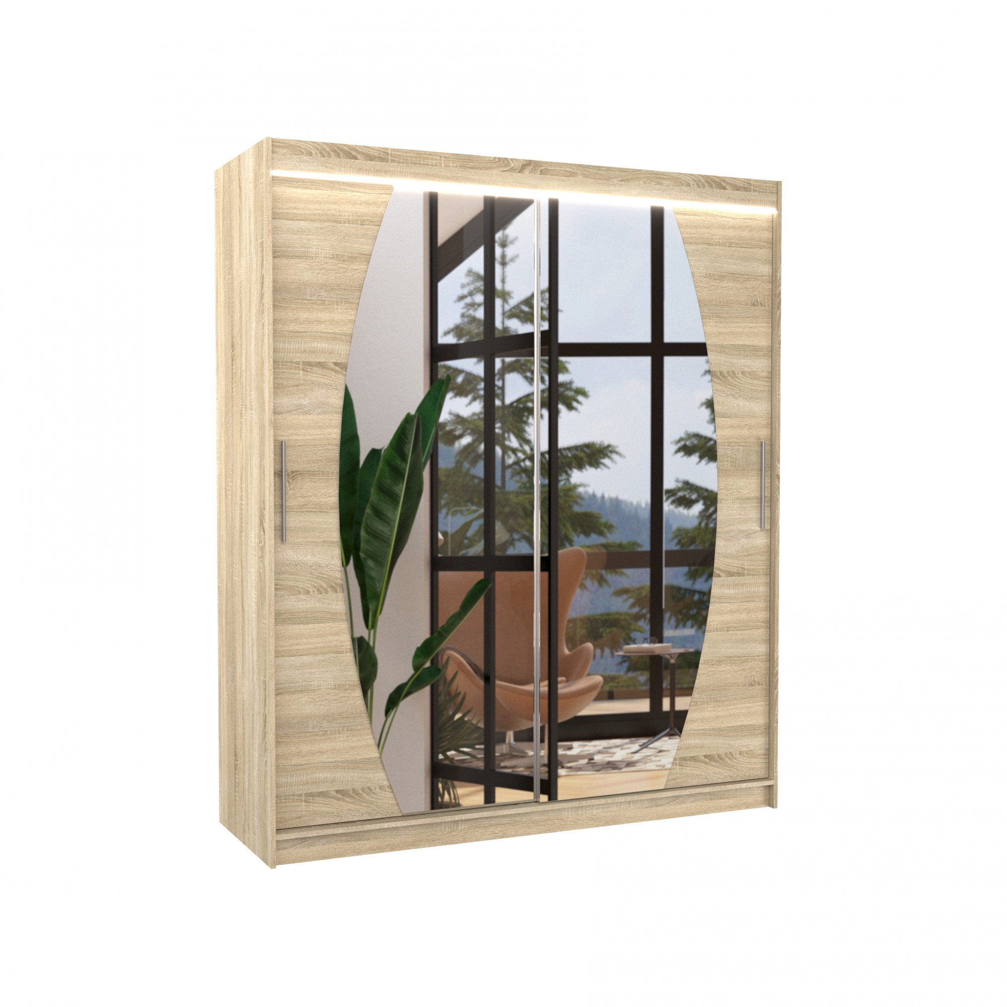 Posuvná skříň se zrcadlem a LED osvětlením BALTIMORE 180 Sonoma+Sonoma