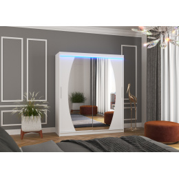 Posuvná skříň se zrcadlem a LED osvětlením BALTIMORE 180 Bílá+Bílá