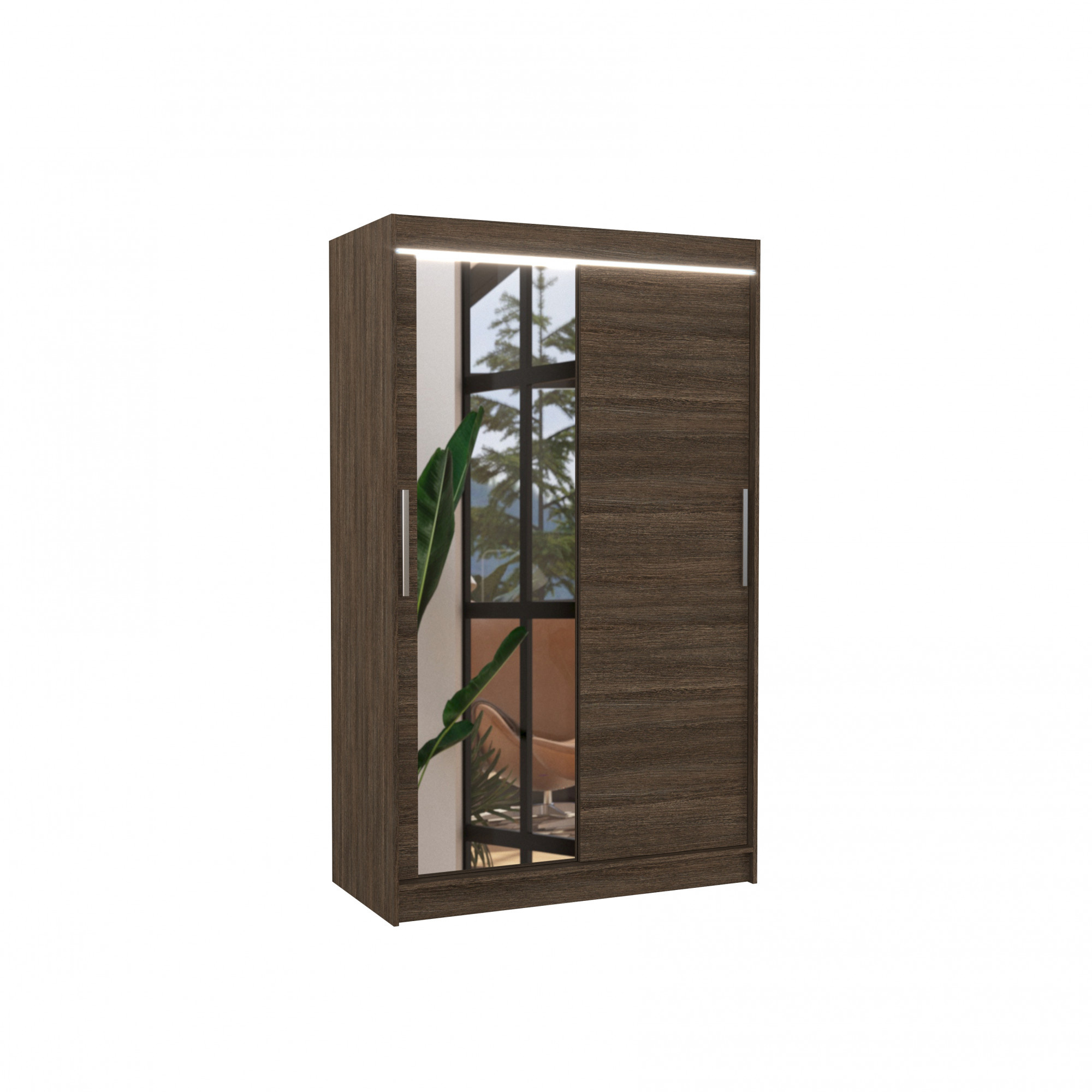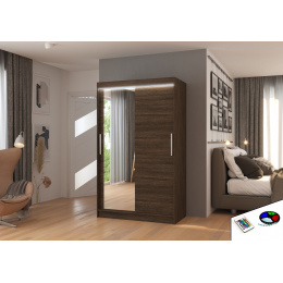Posuvná skříň se zrcadlem a LED osvětlením BARIO 120 Choco+Choco
