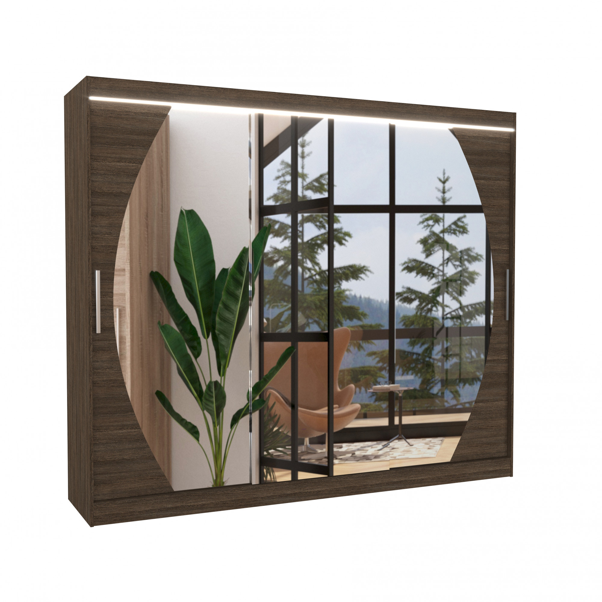 Posuvná skříň se zrcadlem a LED osvětlením CAMBE 250 Choco+Choco
