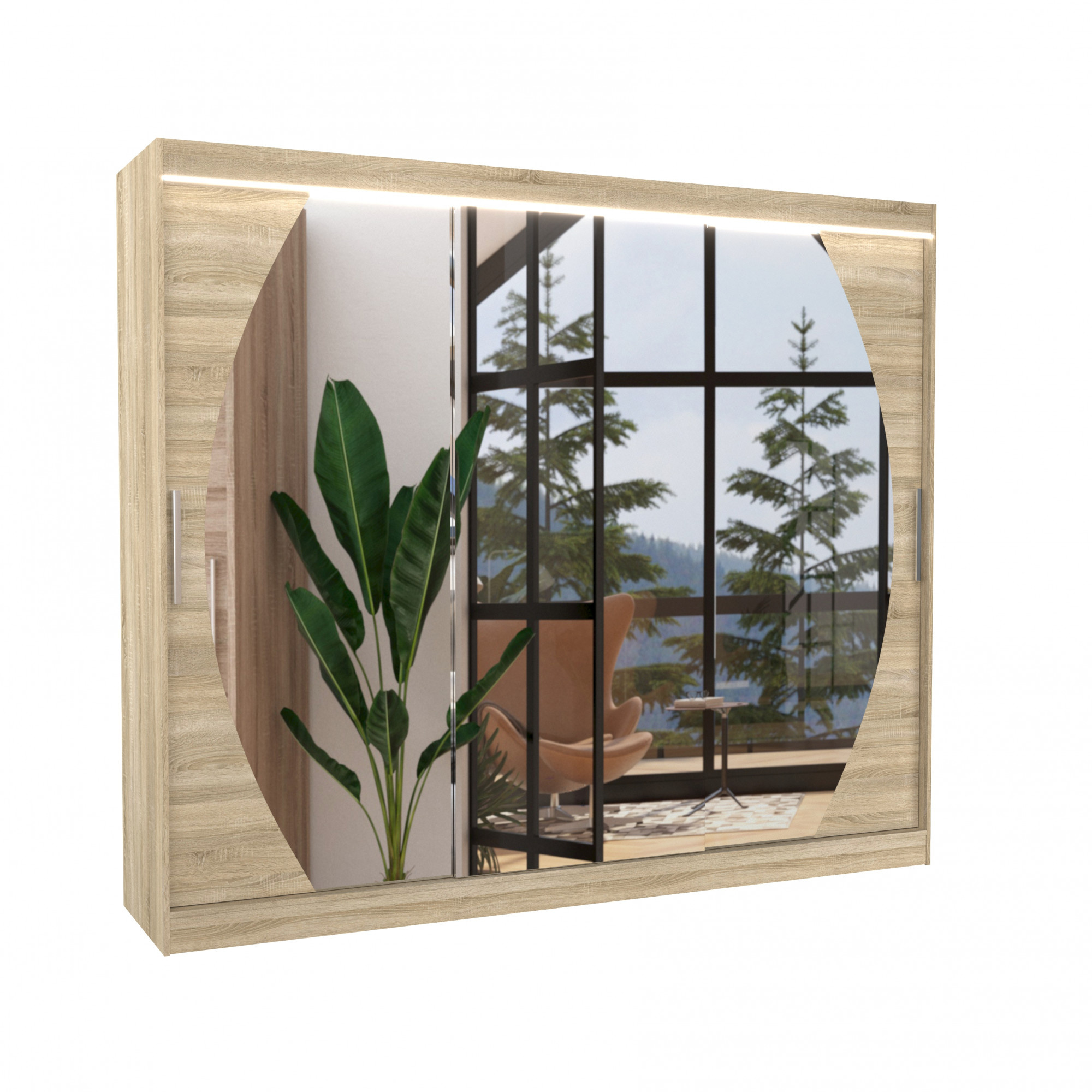 Posuvná skříň se zrcadlem a LED osvětlením CAMBE 250 Sonoma+Sonoma