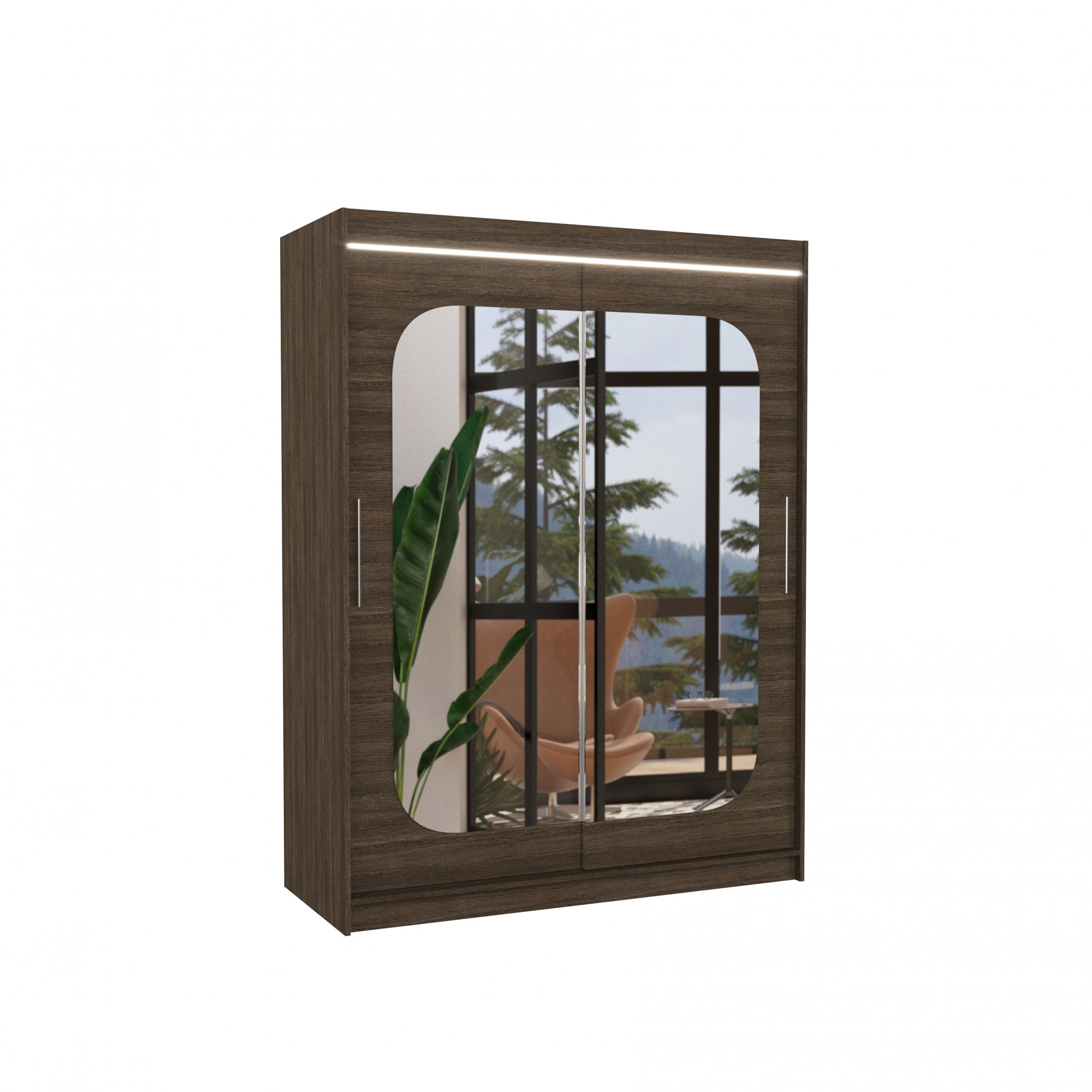 Posuvná skříň se zrcadlem a LED osvětlením CLEVER 150 Choco+Choco