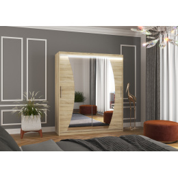 Posuvná skříň se zrcadlem a LED osvětlením DOLORES 180 Sonoma+Sonoma