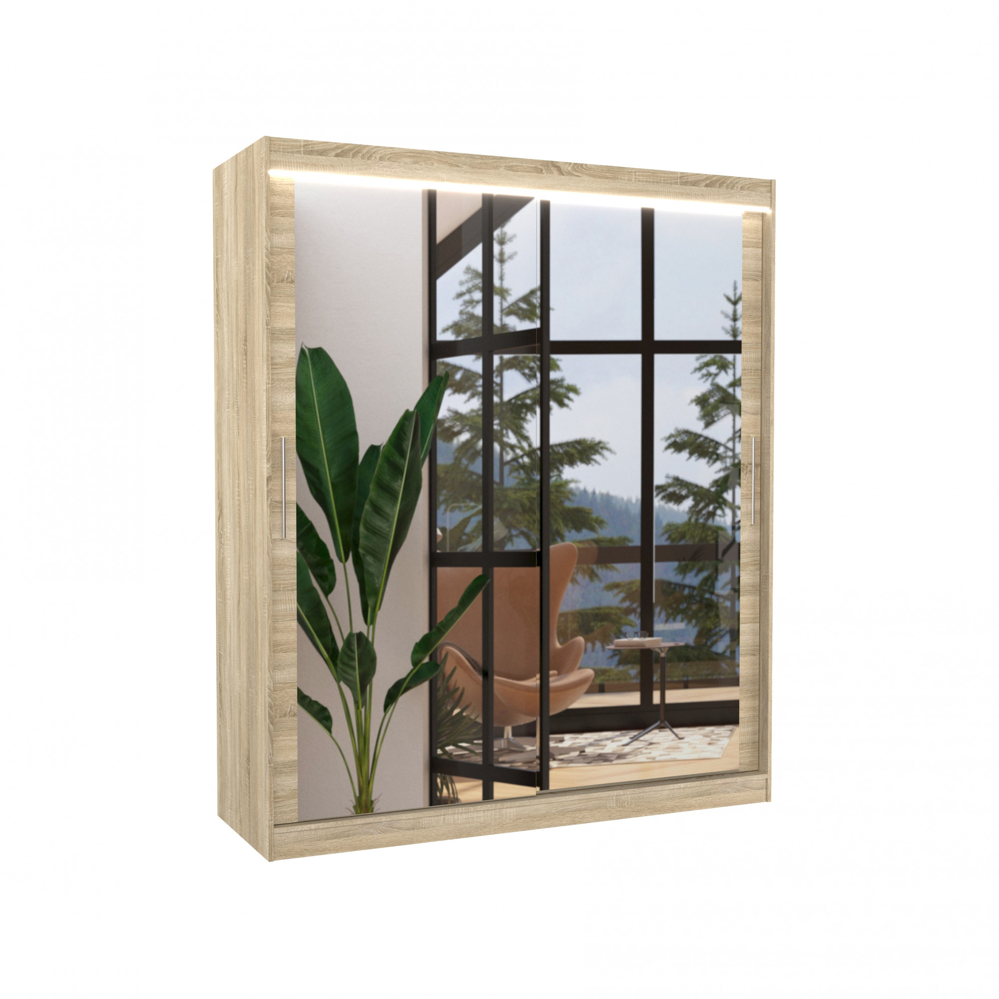 Posuvná skříň se zrcadlem a LED osvětlením ETTORE 180 Sonoma+Sonoma