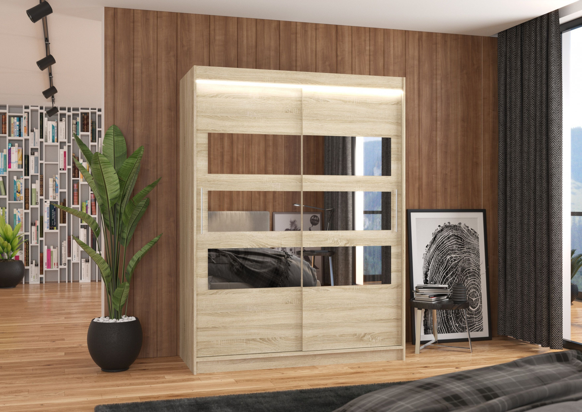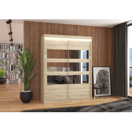 Posuvná skříň se zrcadlem a LED osvětlením FLORENTO 150 Sonoma+Sonoma