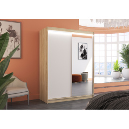 Posuvná skříň se zrcadlem a LED osvětlením JORDI 150 Sonoma+Bílá