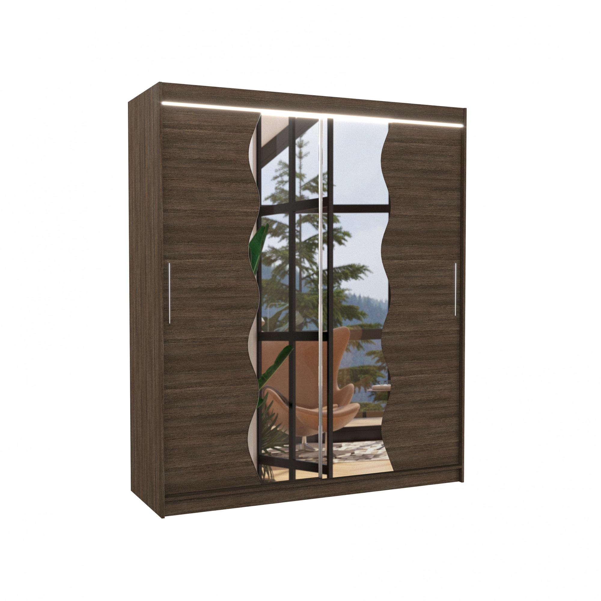 Posuvná skříň se zrcadlem a LED osvětlením KANSAS 180 Choco+Choco
