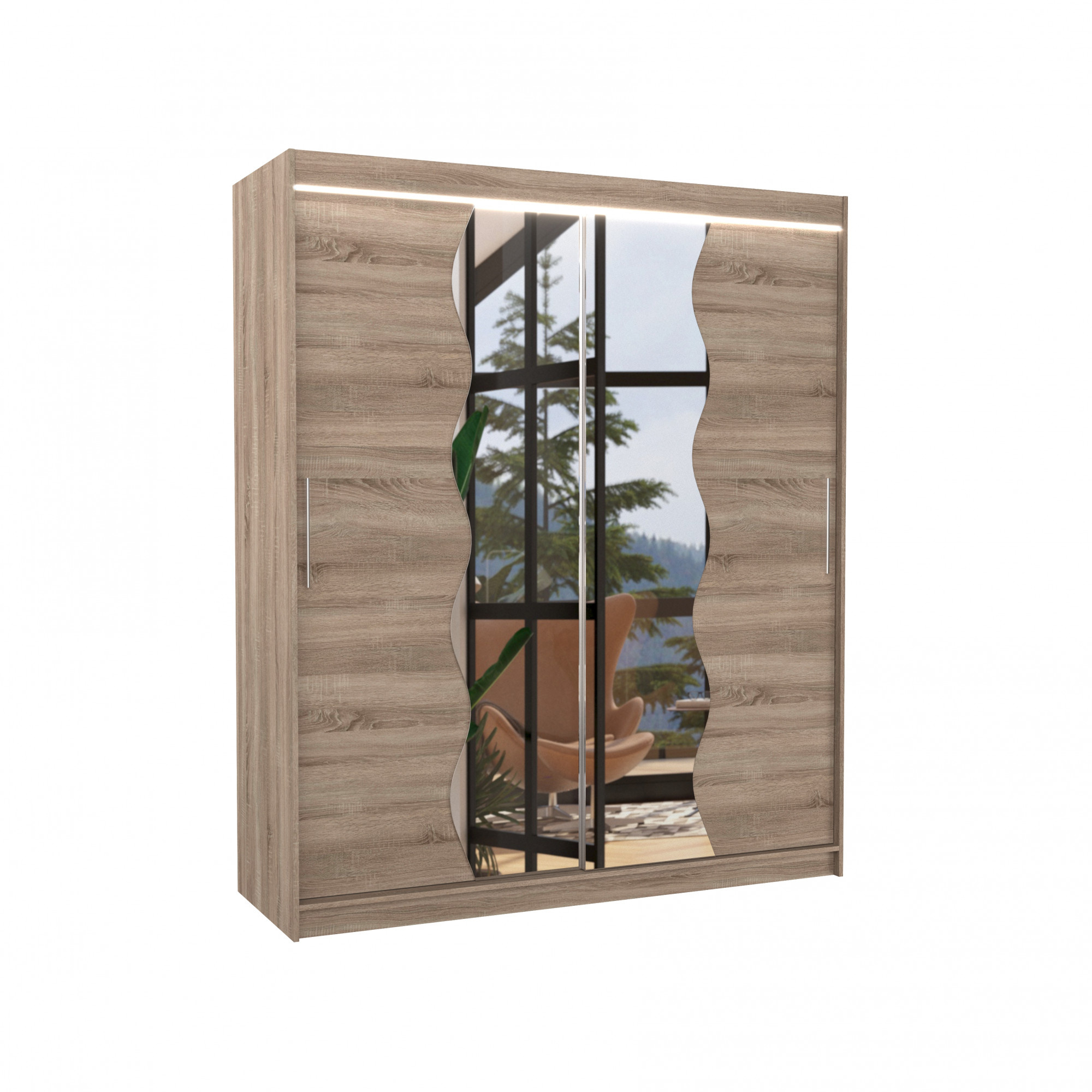 Posuvná skříň se zrcadlem a LED osvětlením KANSAS 180 Truffle+Truffle