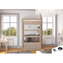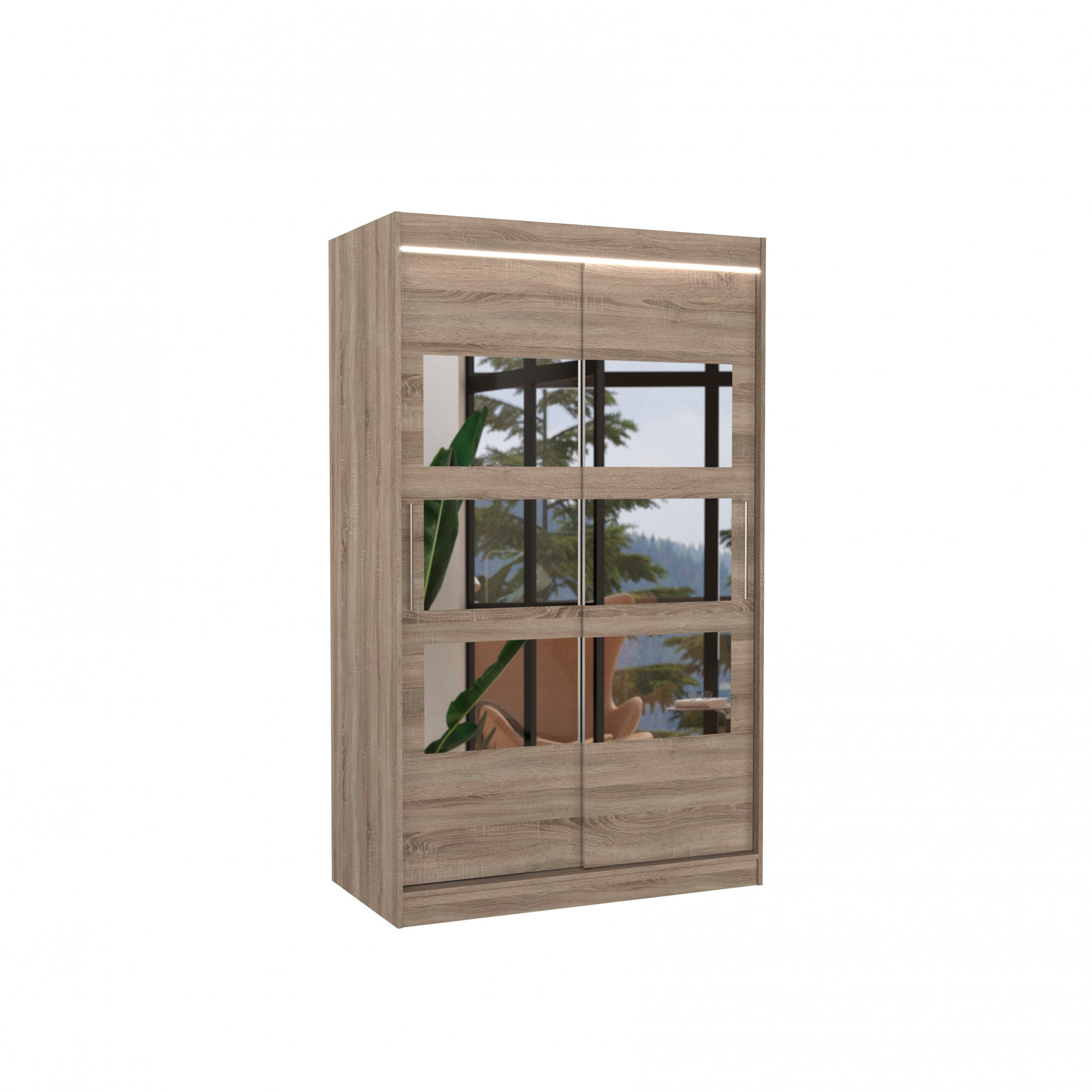 Šatní skříň s posuvnými dveřmi, zrcadlem a LED osvětlením KOLORADO 120 Truffle+Truffle