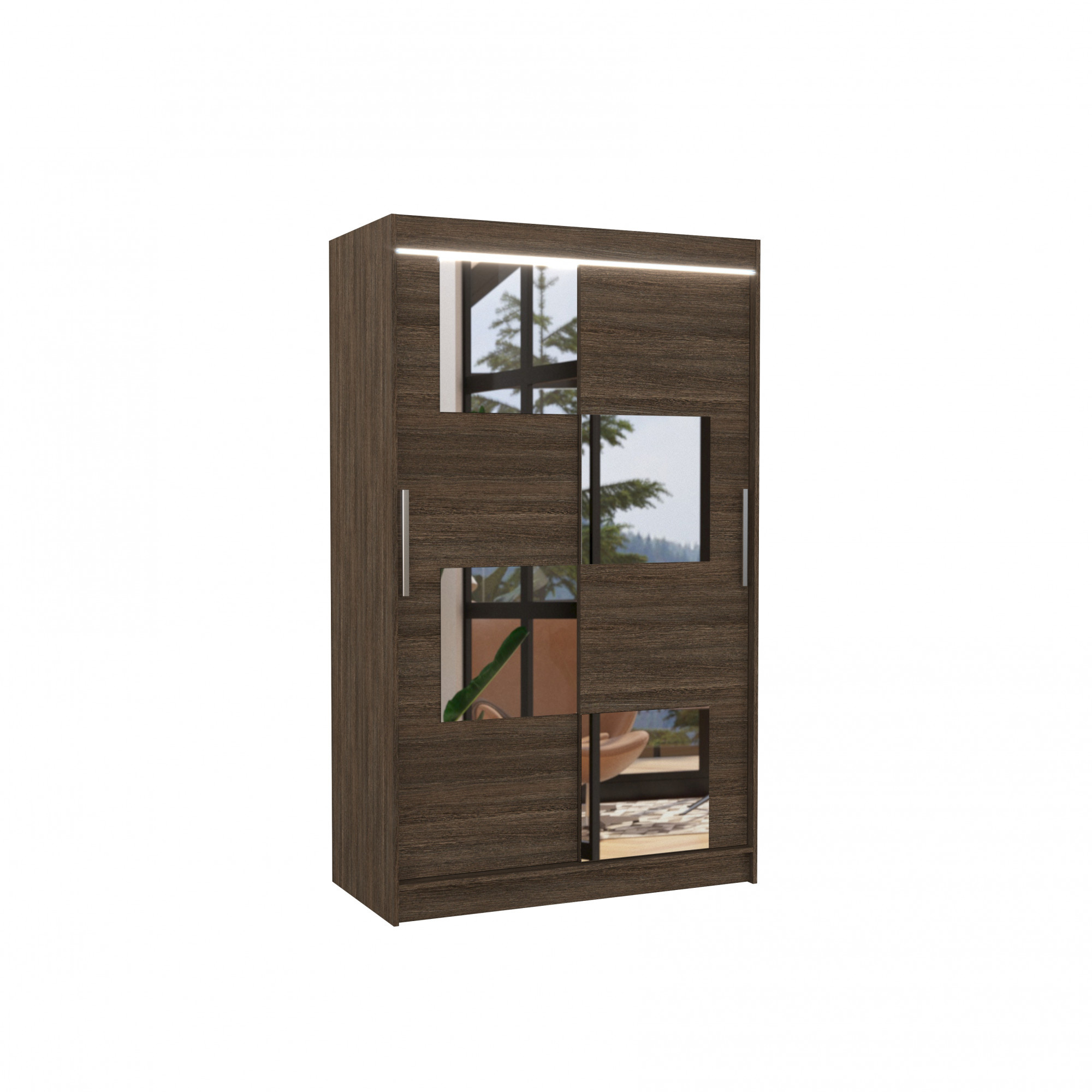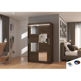 Posuvná skříň se zrcadlem a LED osvětlením LUGANO 120 Choco+Choco