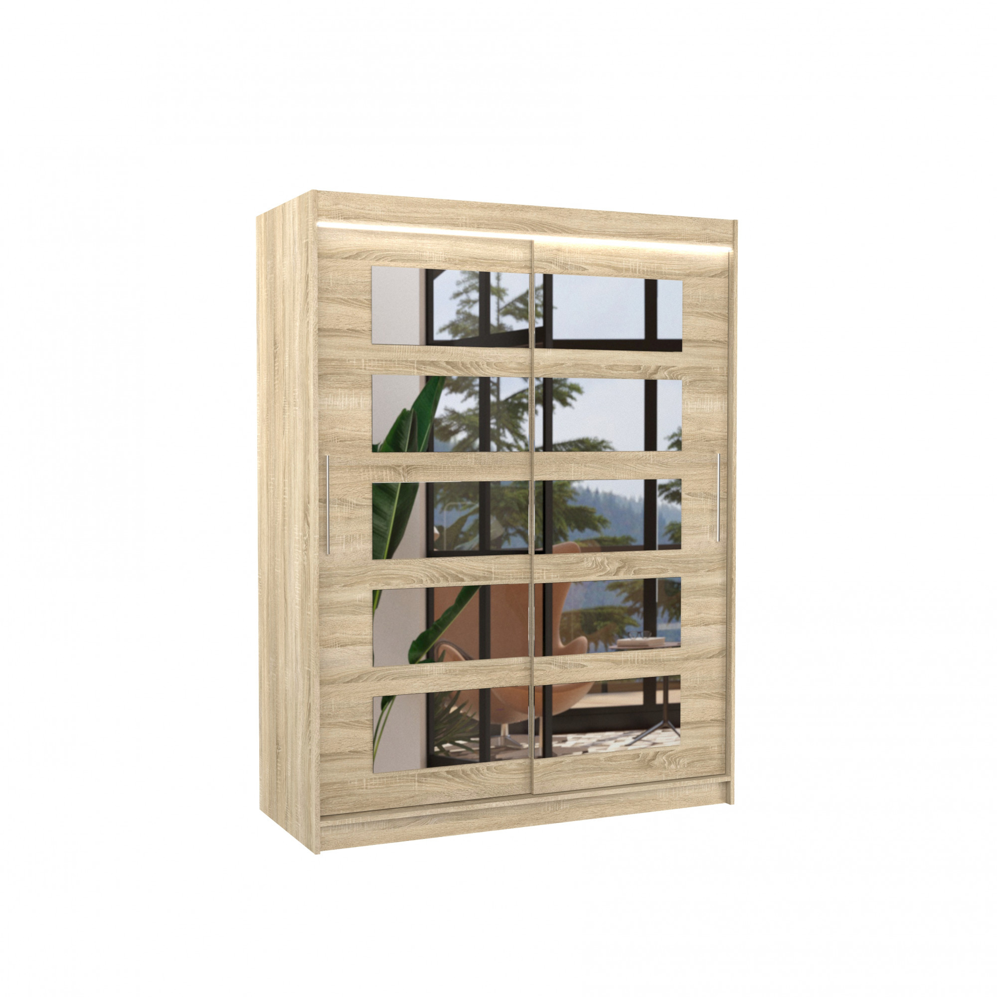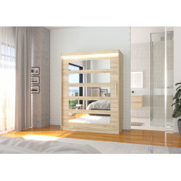 Posuvná skříň se zrcadlem a LED osvětlením MURANI 150 Sonoma+Sonoma