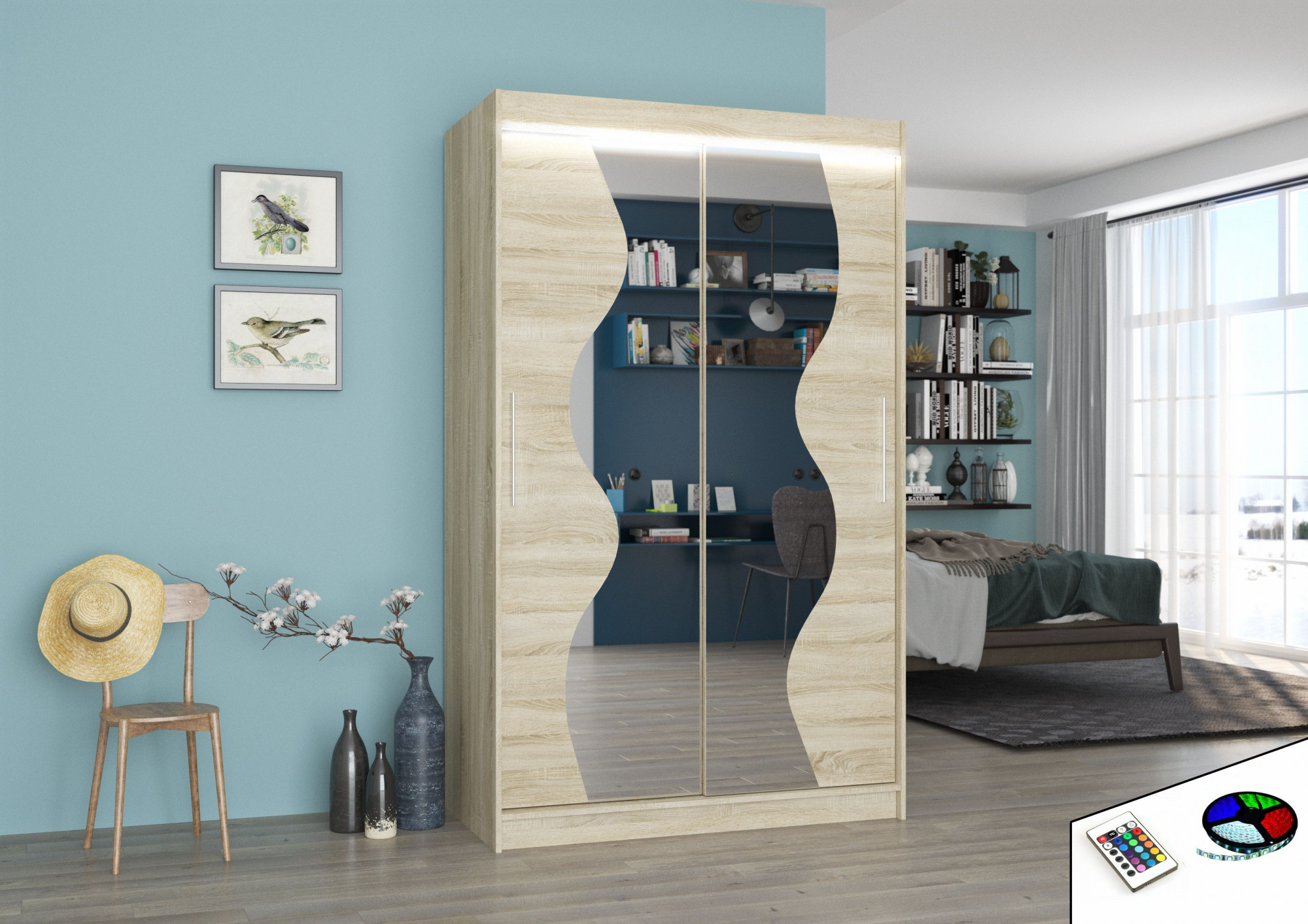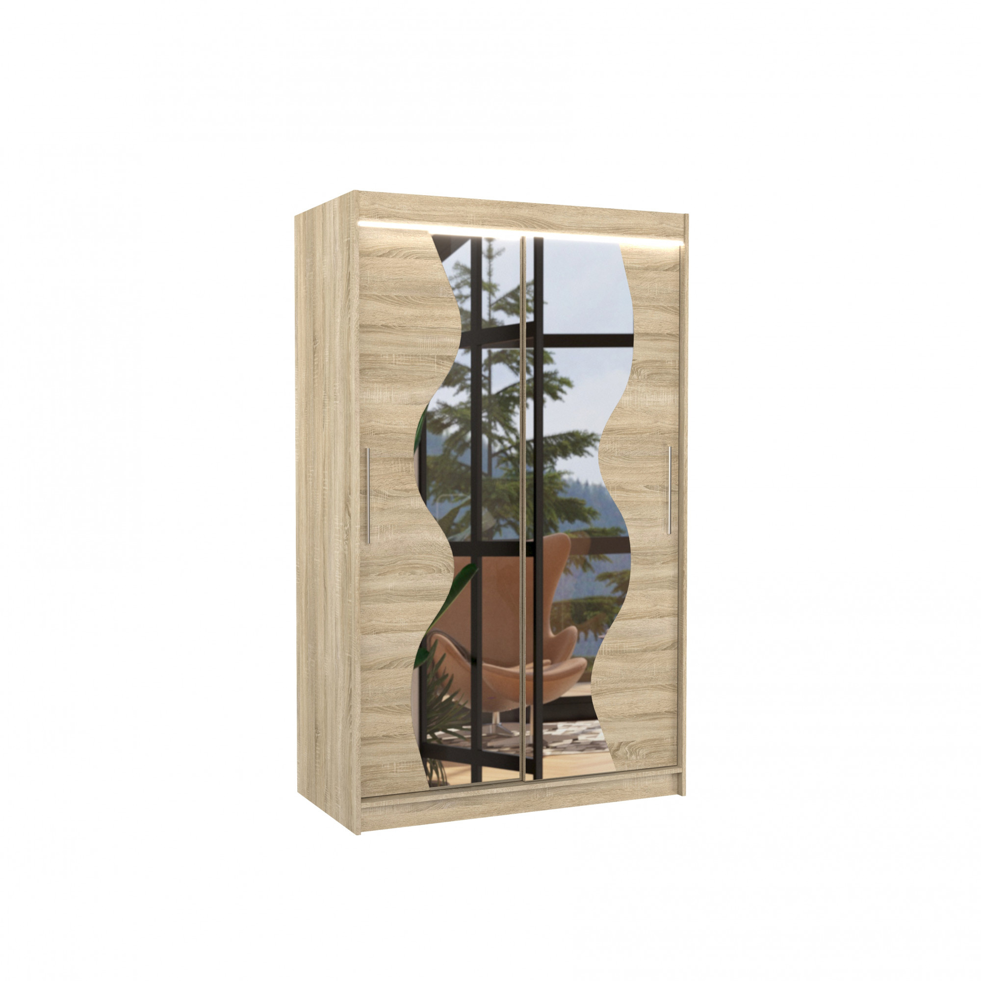 Posuvná skříň se zrcadlem a LED osvětlením OSWALD 120 Sonoma+Sonoma