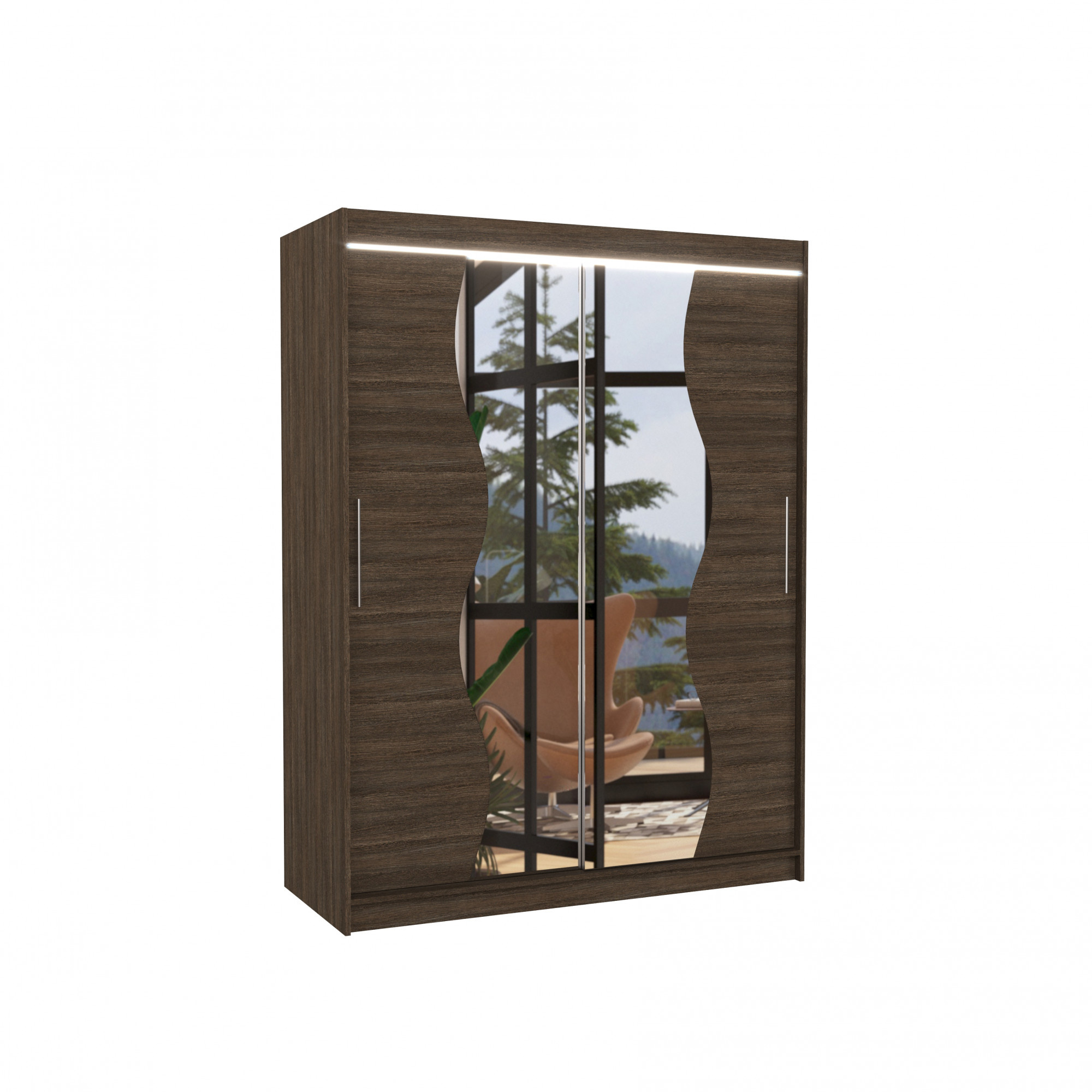 Posuvná skříň se zrcadlem a LED osvětlením RENZO 150 Choco+Choco