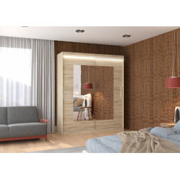 Posuvná skříň se zrcadlem a LED osvětlením ROSETTE 180 Sonoma+Sonoma
